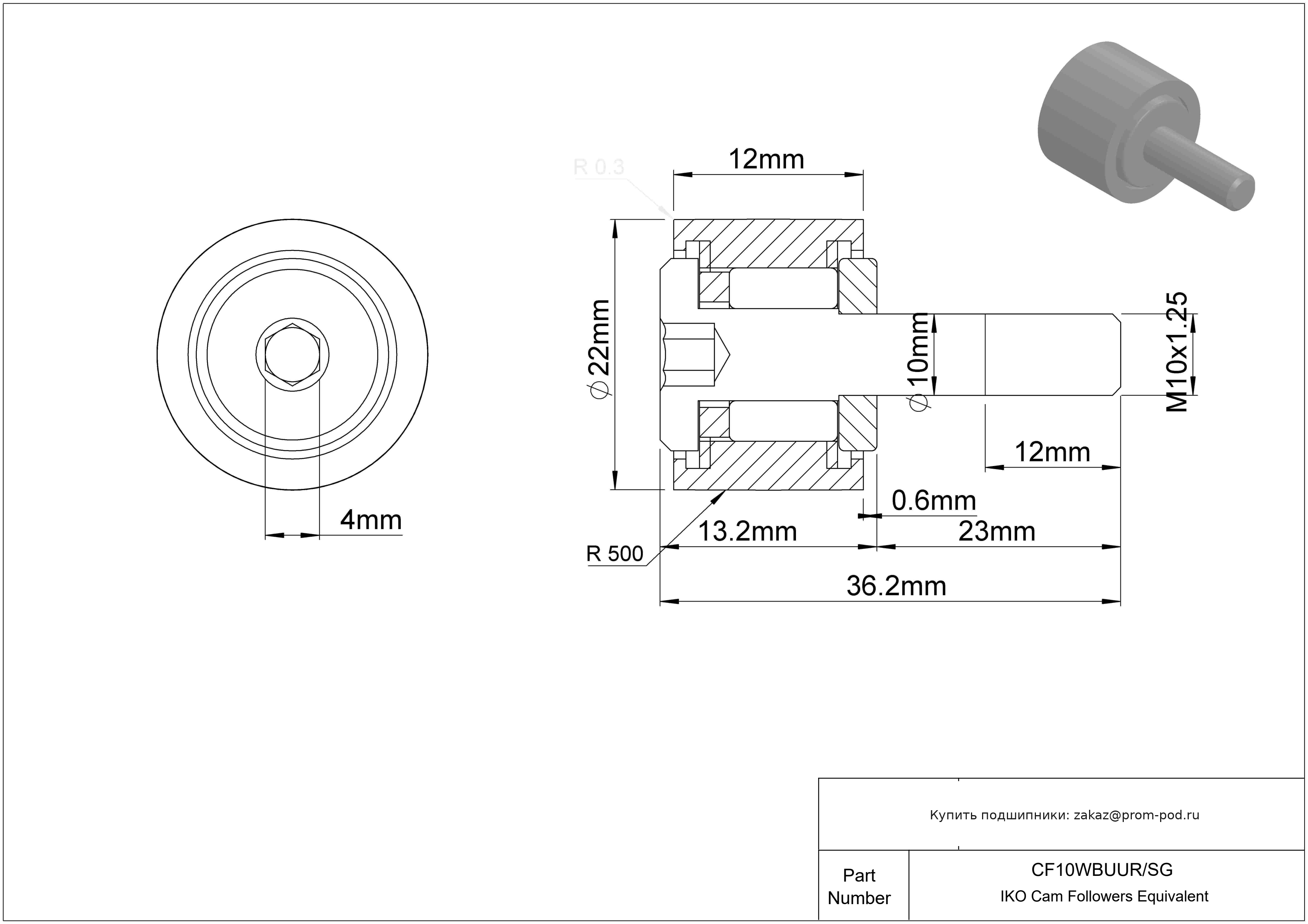 | MCFR 22 SB | Опорный ролик | Герметичное уплотнение с встроенной упорной шайбой. С шестигранным гнездом. |