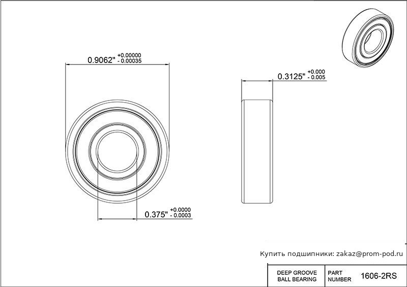 Шарики и кольца из материала AISI 440C. Два уплотнителя из синтетического каучука.