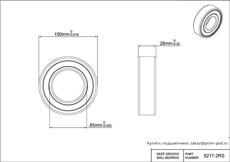 | 217-2ZJ | Шариковый подшипник | Защитная шайба с обеих сторон. Стальные фиксаторы. |