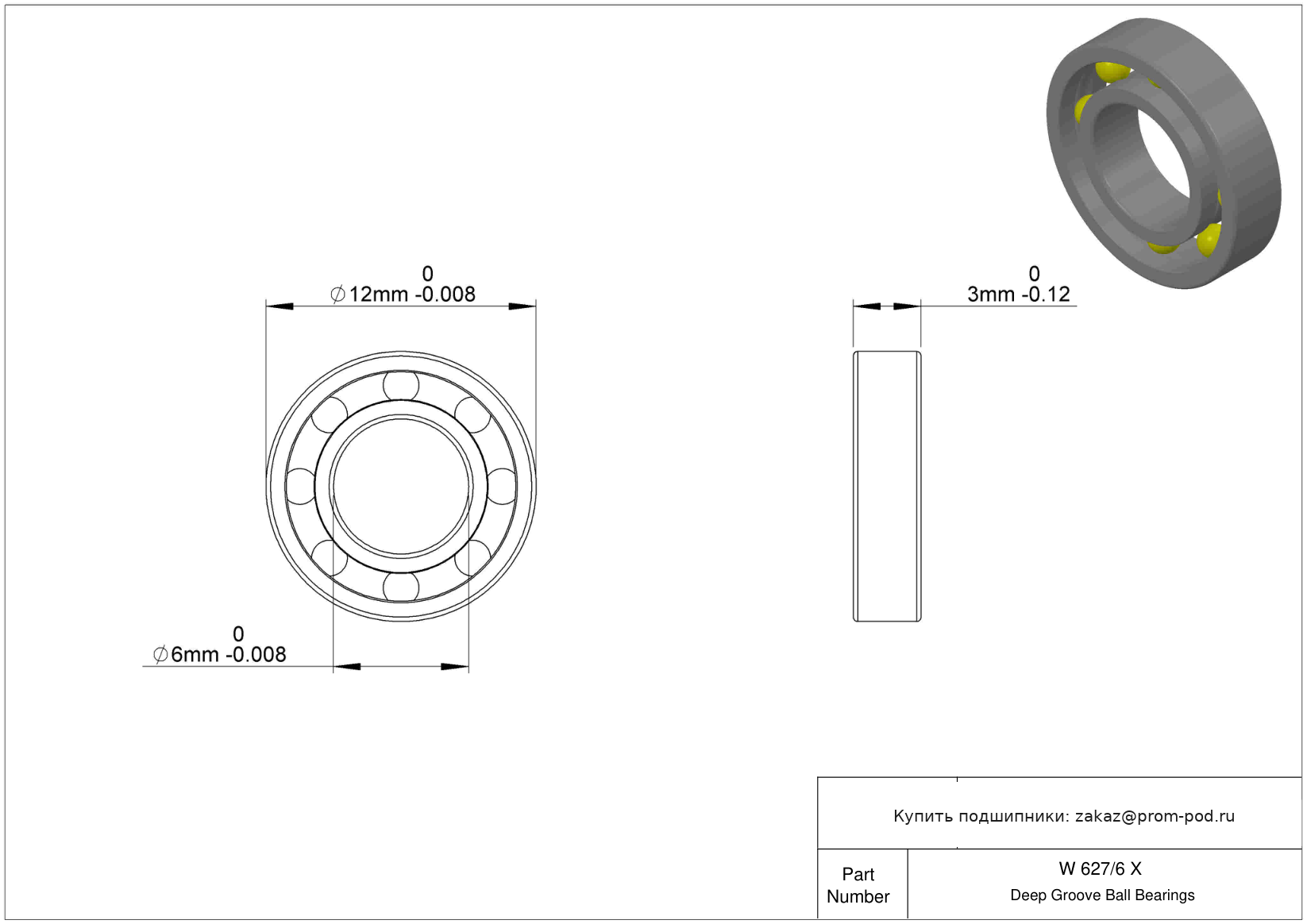 | MR126 | Шариковый подшипник | Тип подшипника: Метрический специальный. |