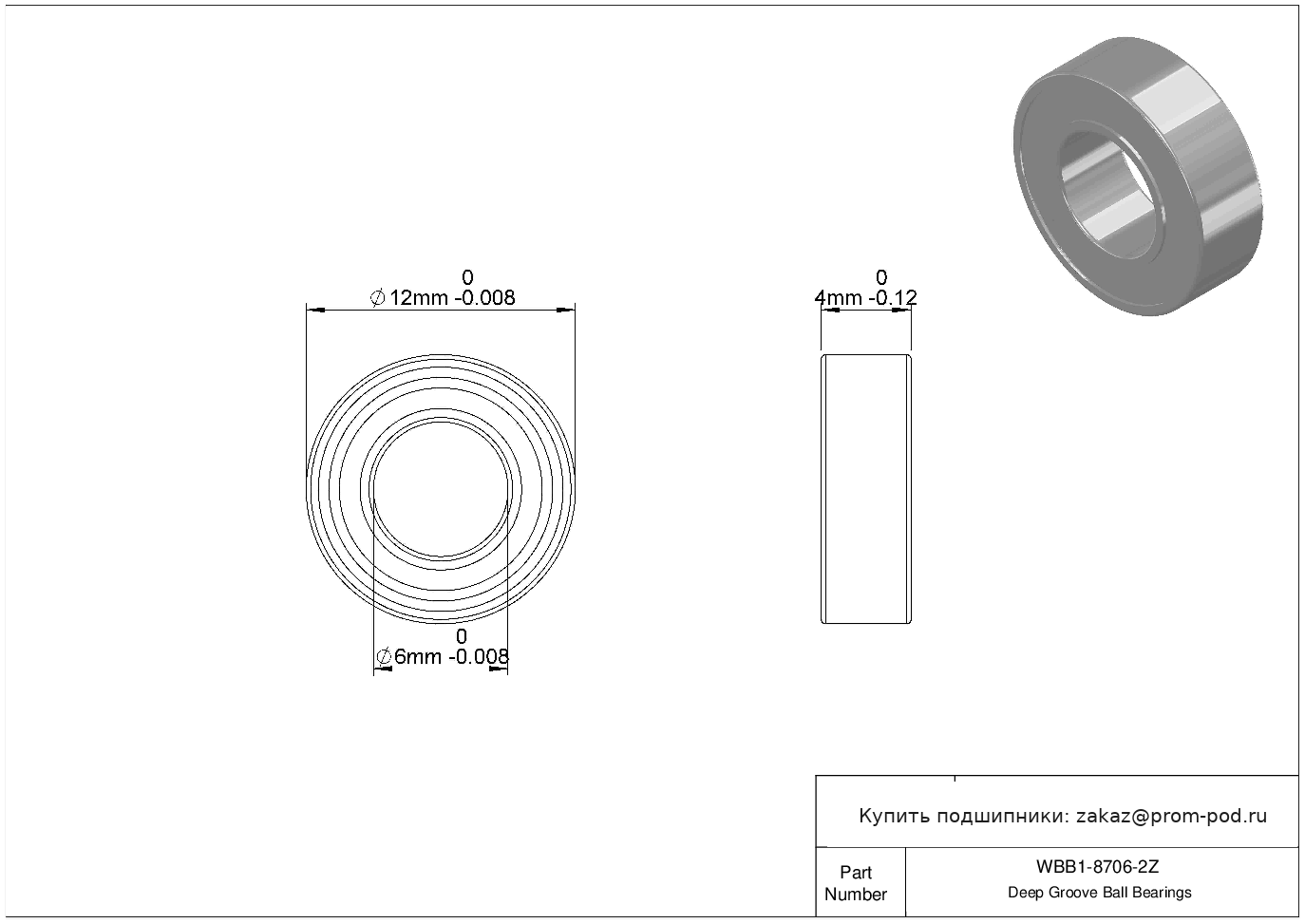 | SMR126zz | Шариковый подшипник | S+MR. Два уплотнителя из синтетического каучука. |