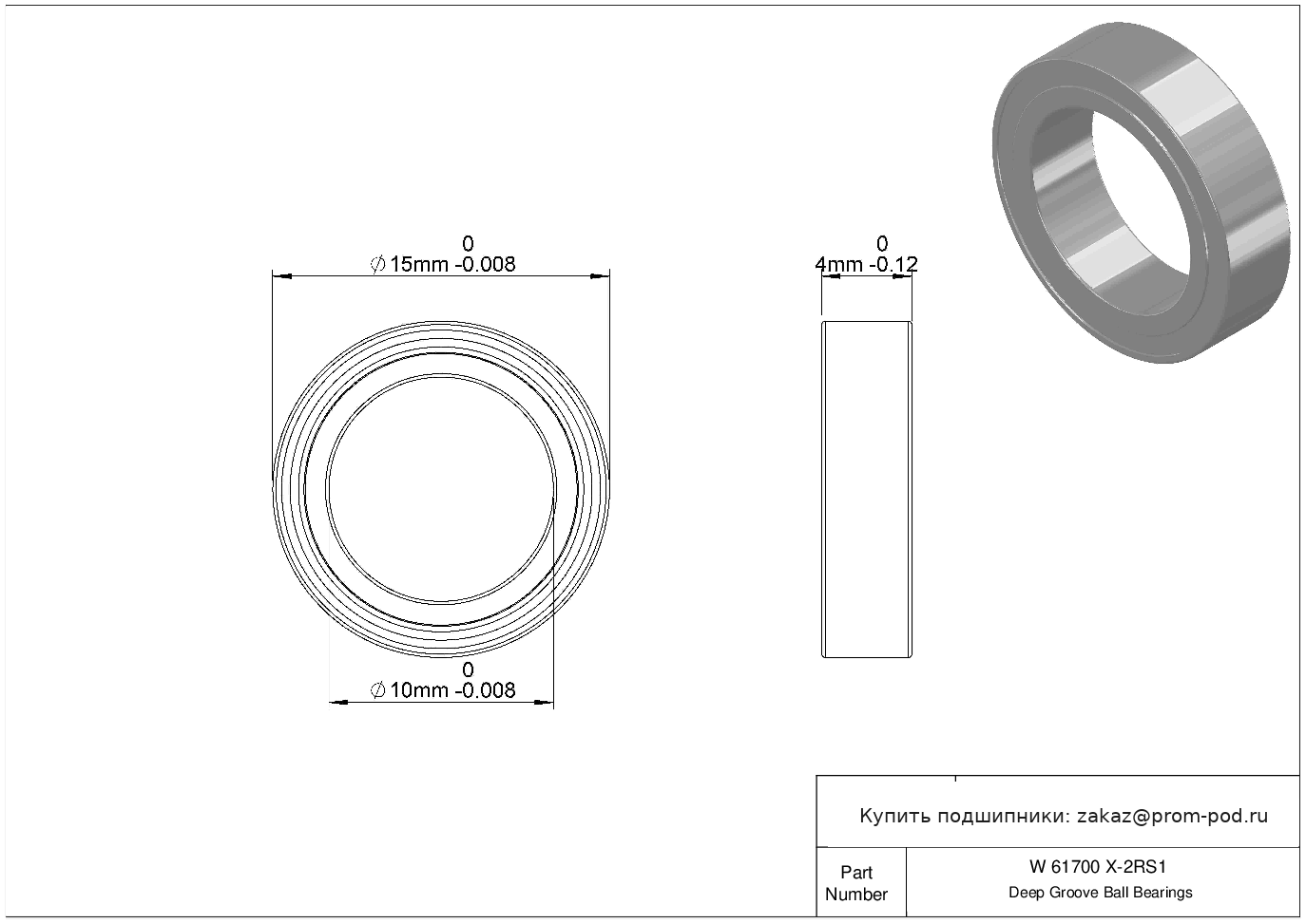 | 6700 2RS | Шариковый подшипник | Уплотнение с обеих сторон, NBR. |