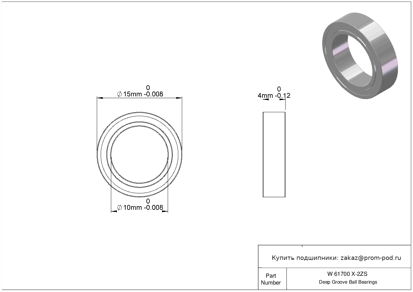 | 6700 2RS | Шариковый подшипник | Уплотнение с обеих сторон, NBR. |