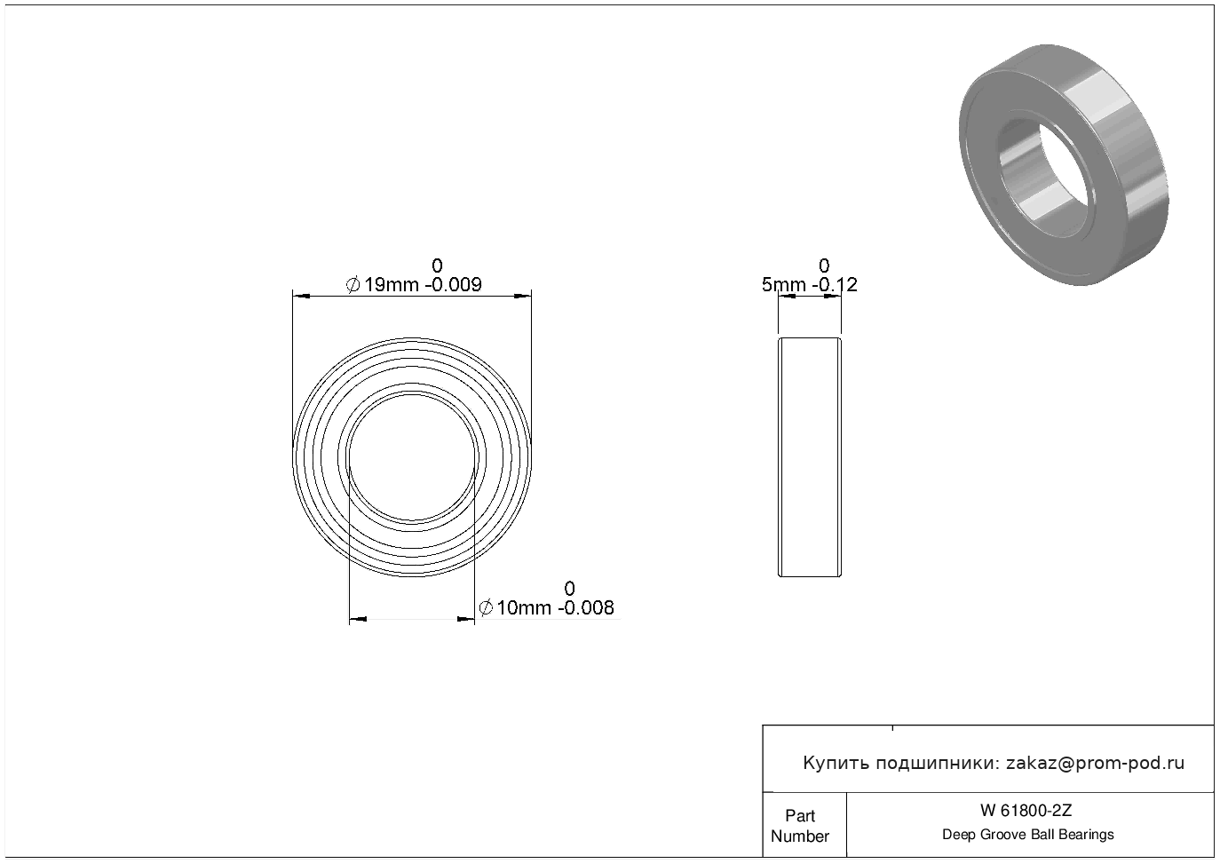 | 6800 2RS | Шариковый подшипник | Уплотнение с обеих сторон, NBR. |