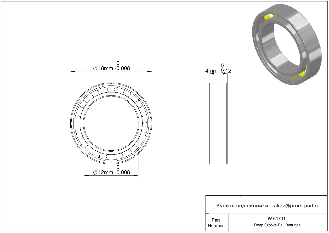 | 6701 2RS | Шариковый подшипник | Уплотнение с обеих сторон, NBR. |