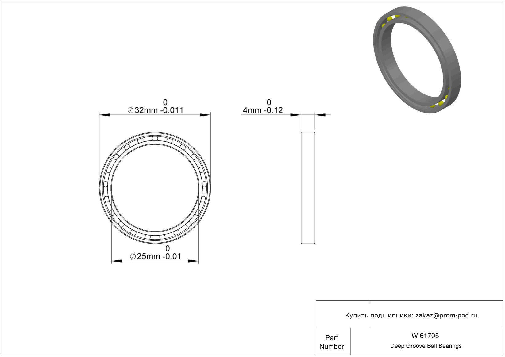 | 6705zz | Шариковый подшипник | Два уплотнителя из синтетического каучука. |