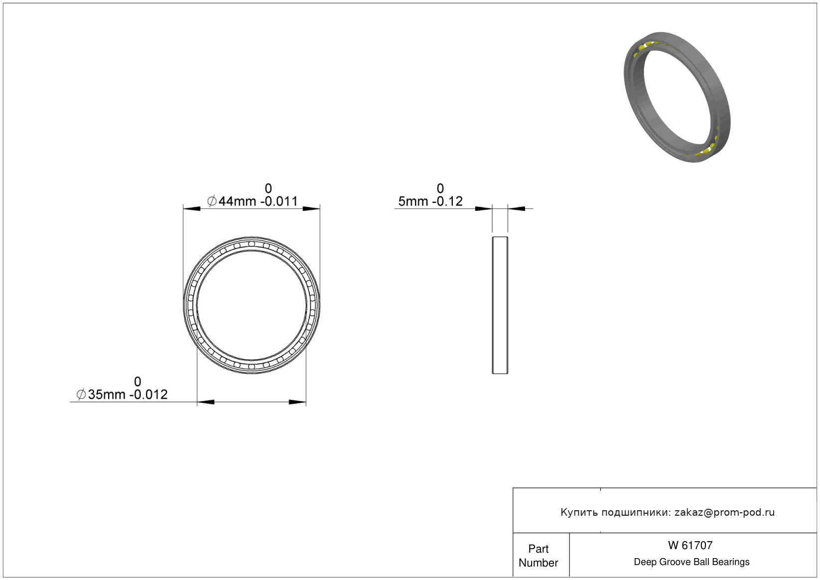 | 6707zz | Шариковый подшипник | Два уплотнителя из синтетического каучука. |