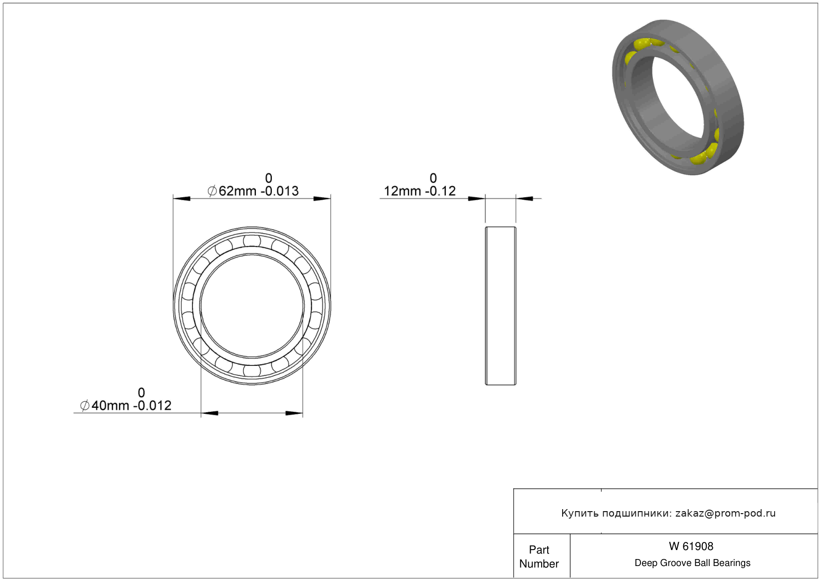 | 6908DDU | Шариковый подшипник | Подшипник с уплотнением по обеим сторонам. |