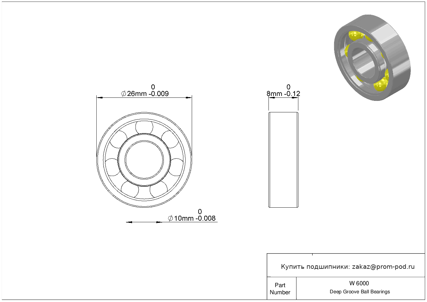 Шарики и кольца из материала AISI 440C. Два уплотнителя из синтетического каучука.