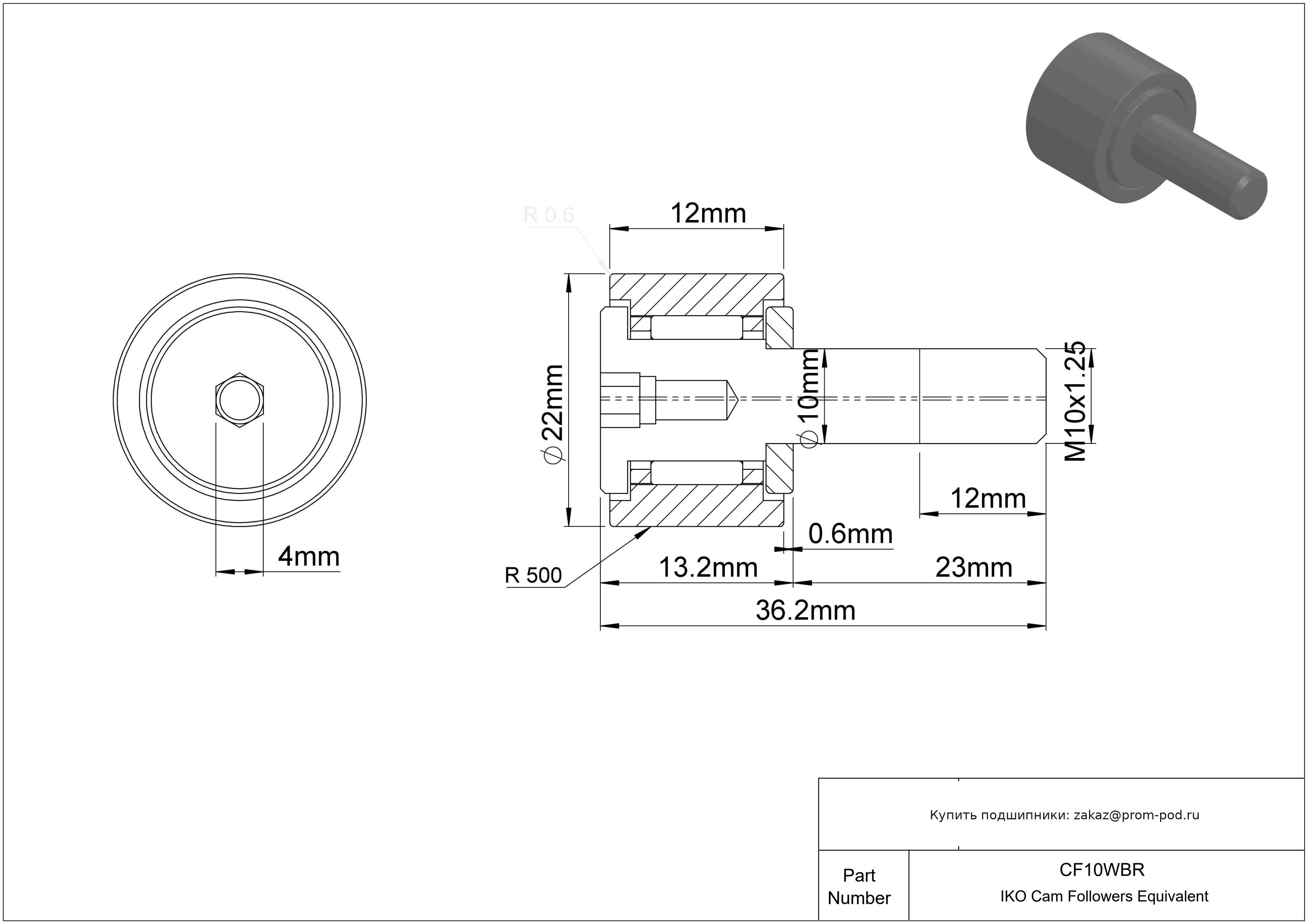 | MCFR 22 BX | Опорный ролик | С шестигранным гнездом. Цилиндрическое внешнее кольцо. |
