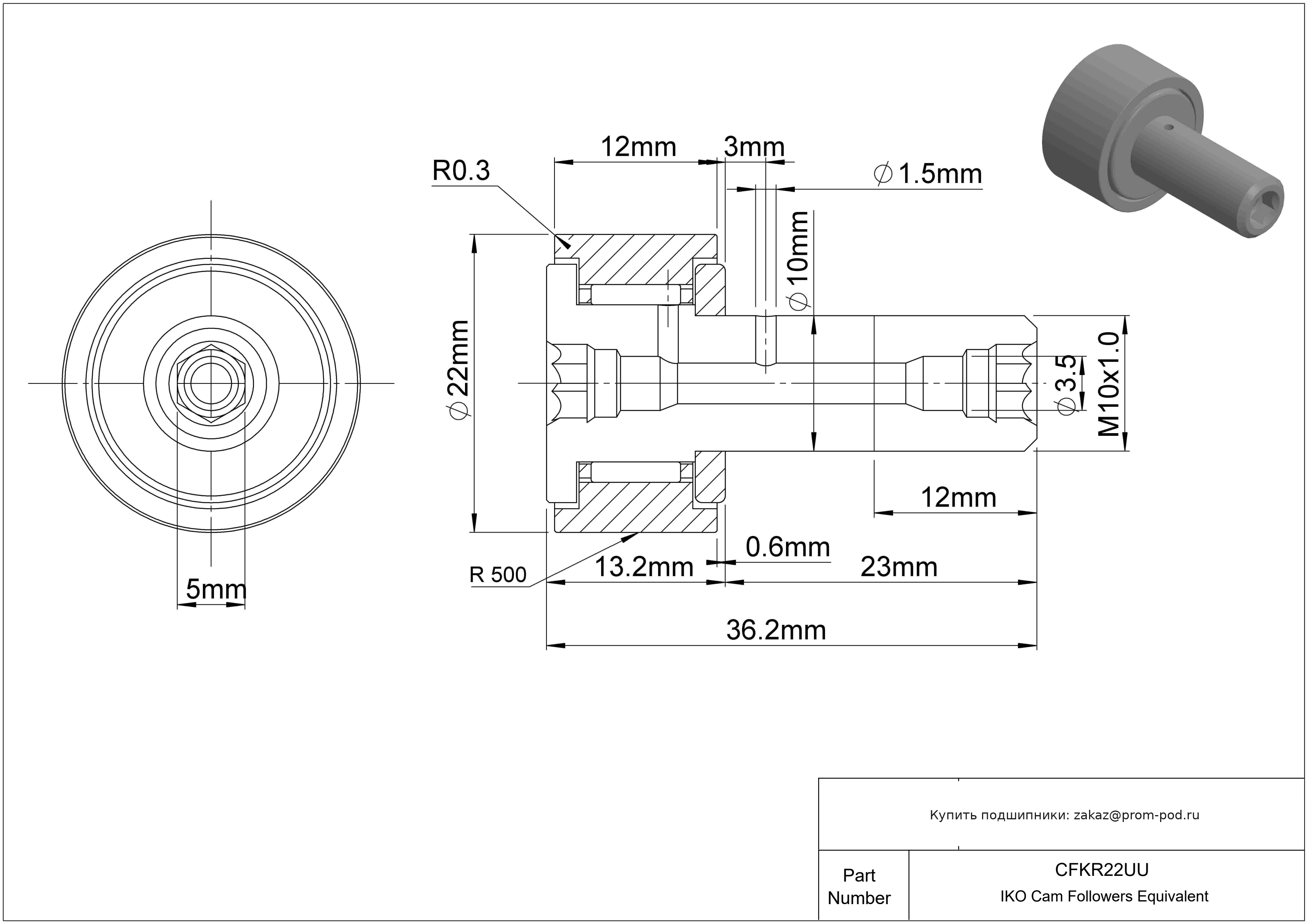 | CF10FBR | Опорный ролик | Cферический профиль рабочей поверхности наружного кольца. С шестигранным гнездом. |