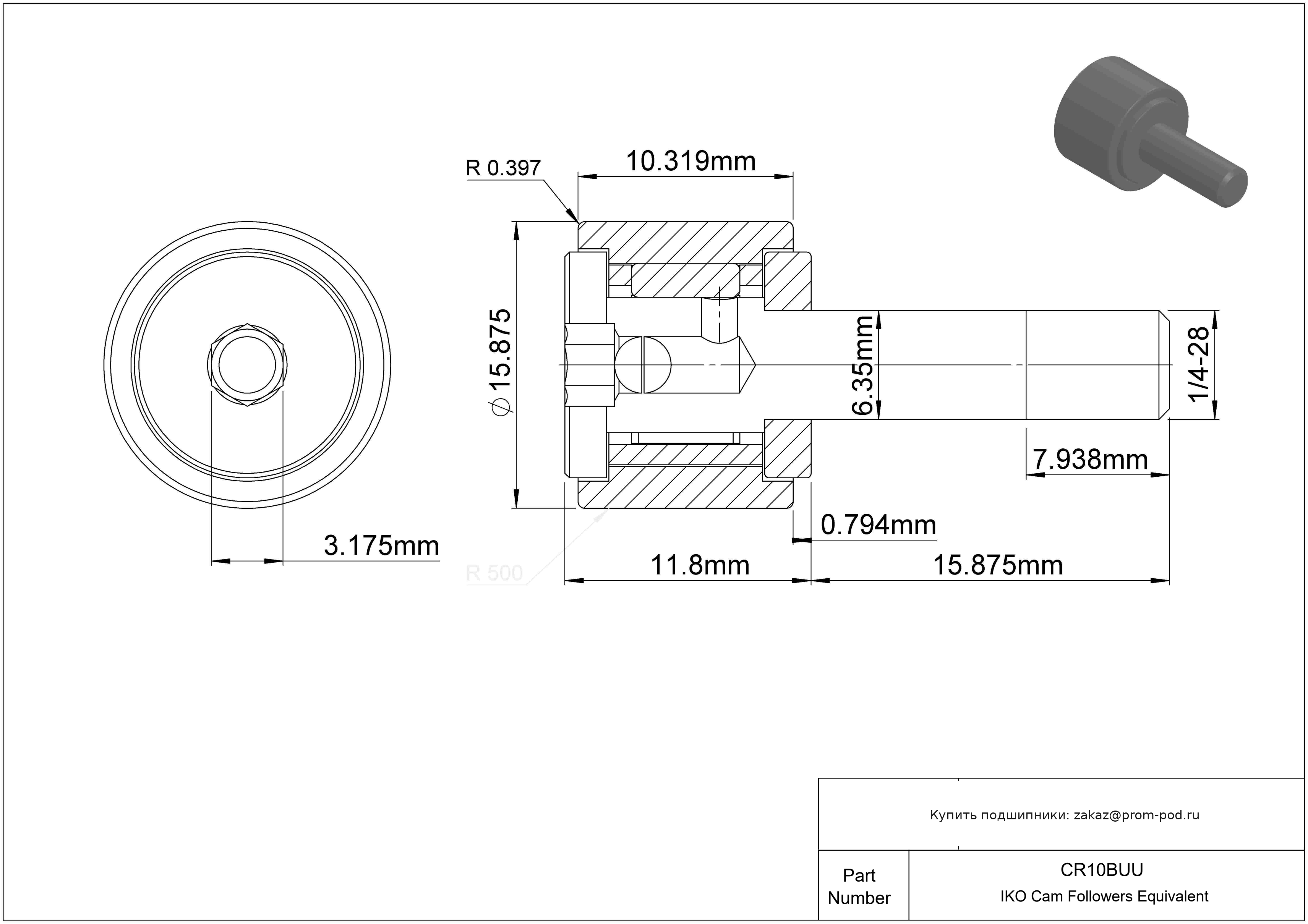 Игольчатый опорный ролик - дюймовая серия. Бессепараторный роликовый подшипник. Герметичное уплотнение с встроенной упорной шайбой. С шестигранным гнездом.