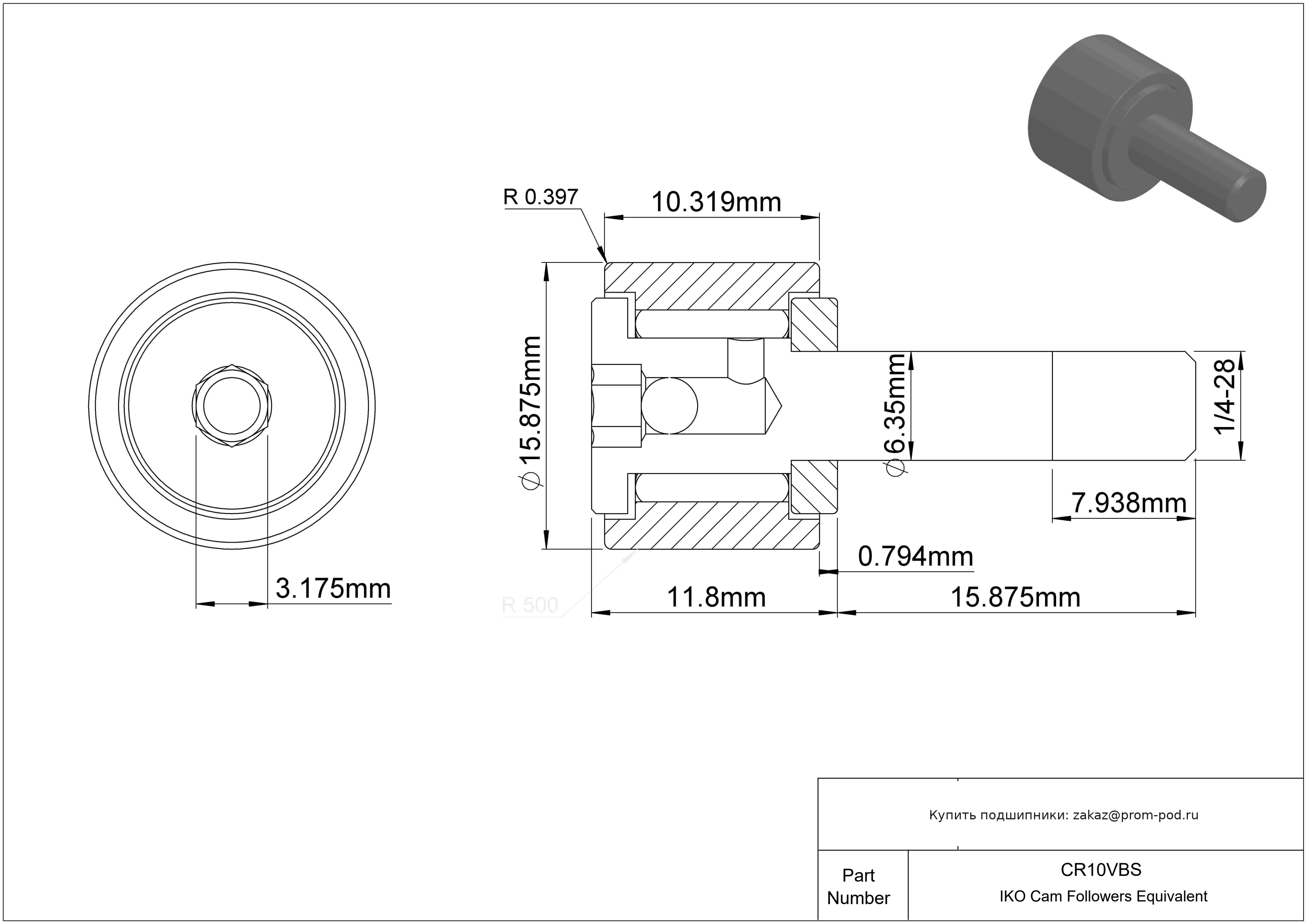 Игольчатый опорный ролик - дюймовая серия. Бессепараторный роликовый подшипник.
