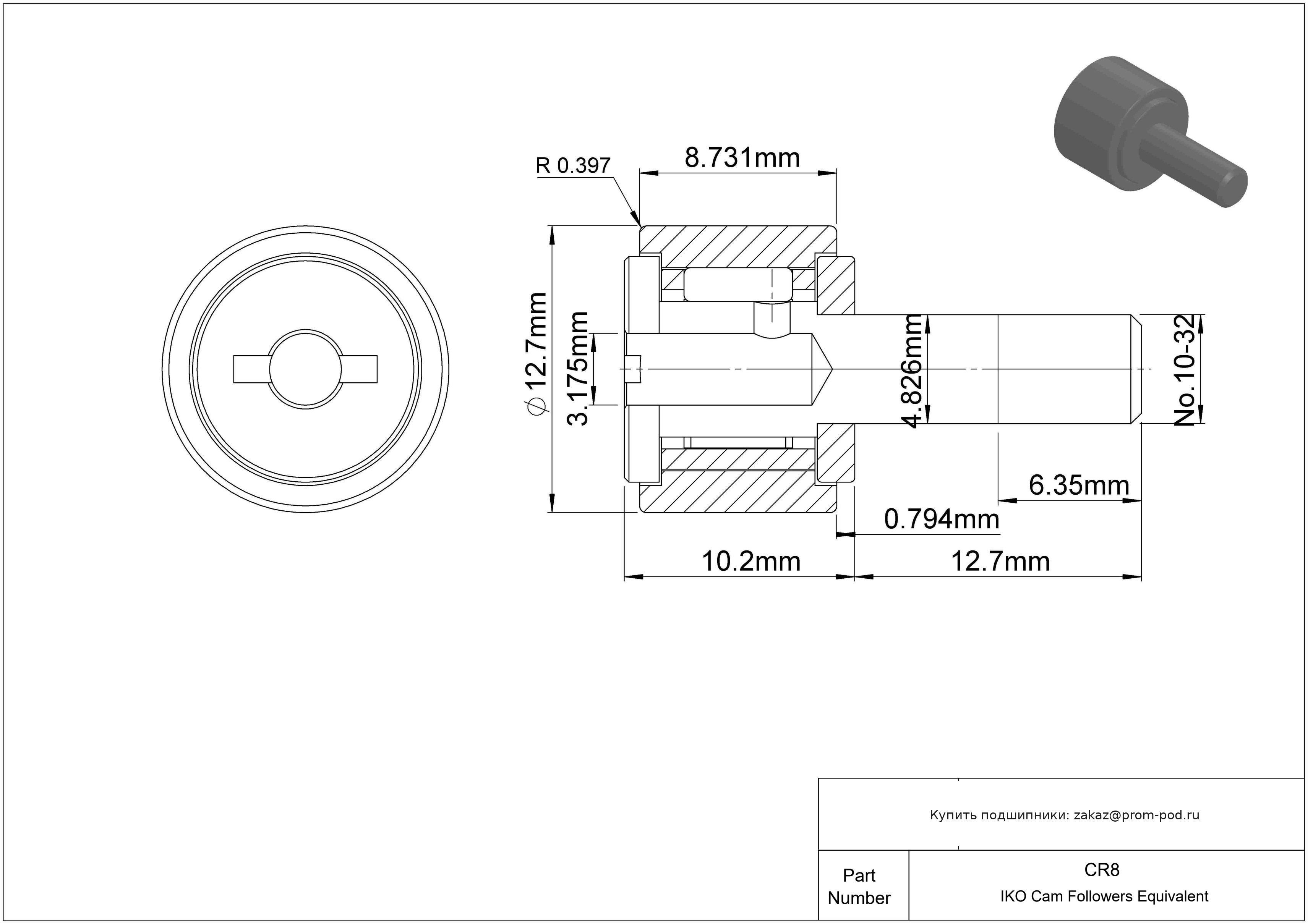 Игольчатый опорный ролик - дюймовая серия. Бессепараторный роликовый подшипник.