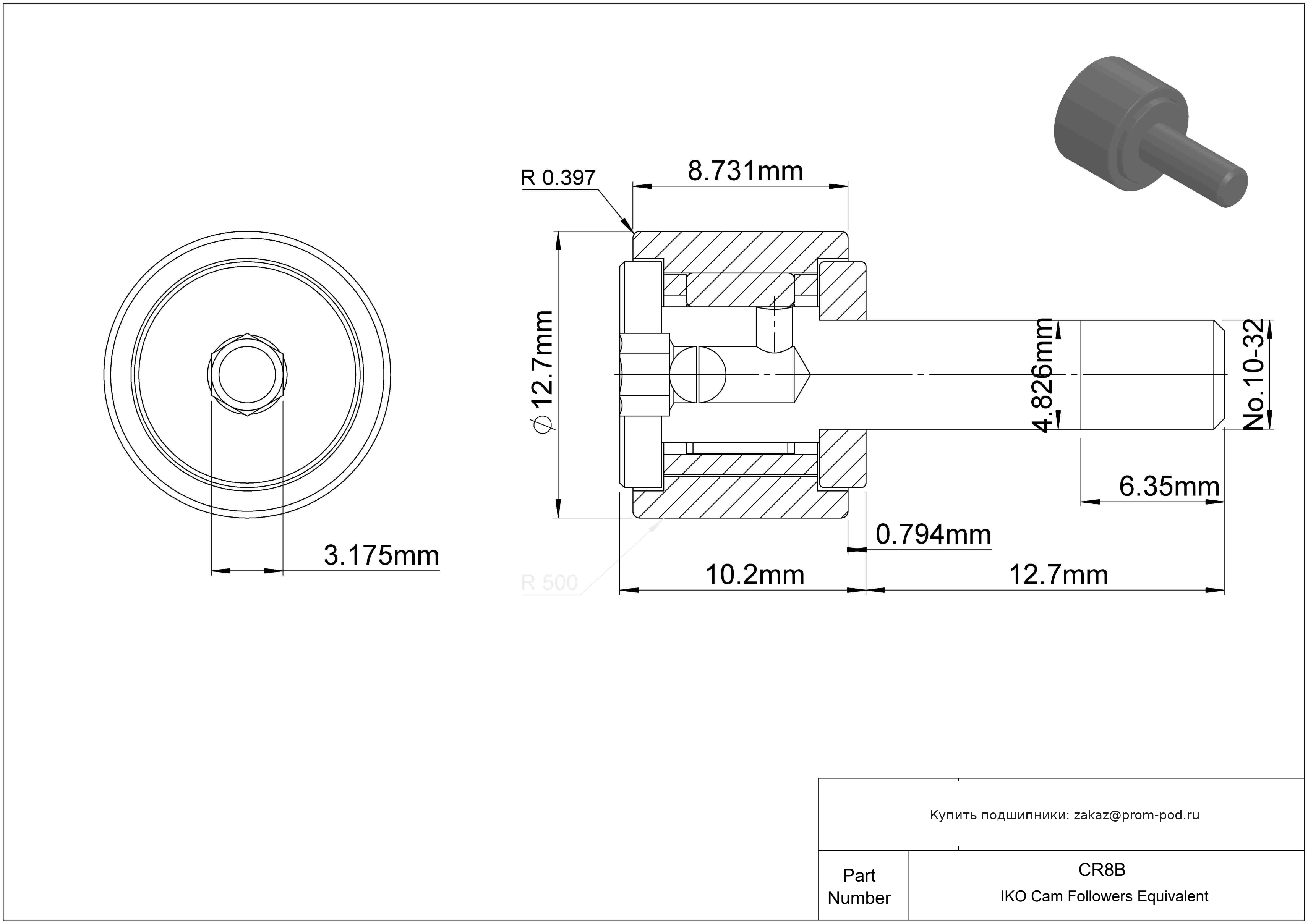 Игольчатый опорный ролик - дюймовая серия. Бессепараторный роликовый подшипник.