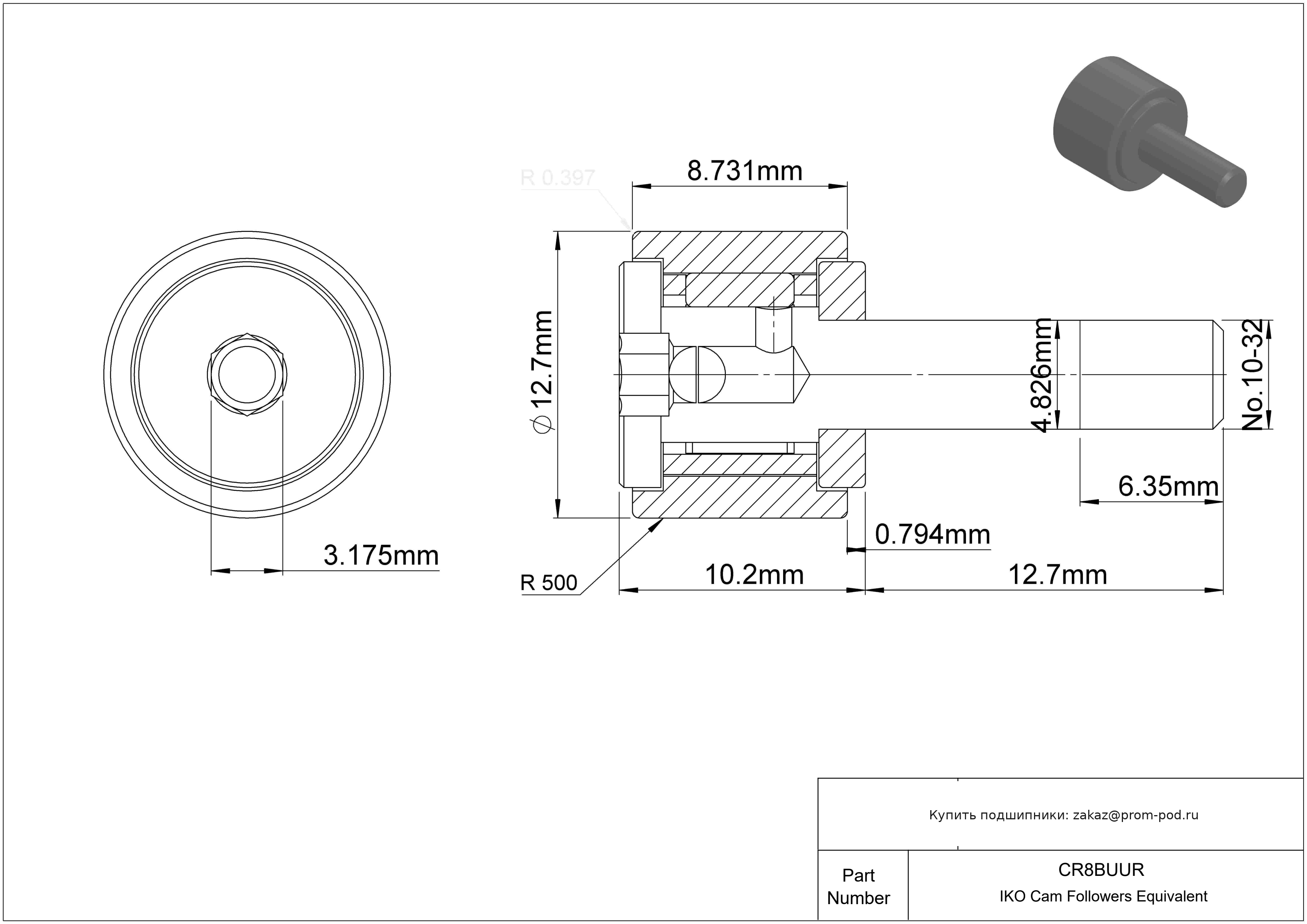 Игольчатый опорный ролик - дюймовая серия. Бессепараторный роликовый подшипник.