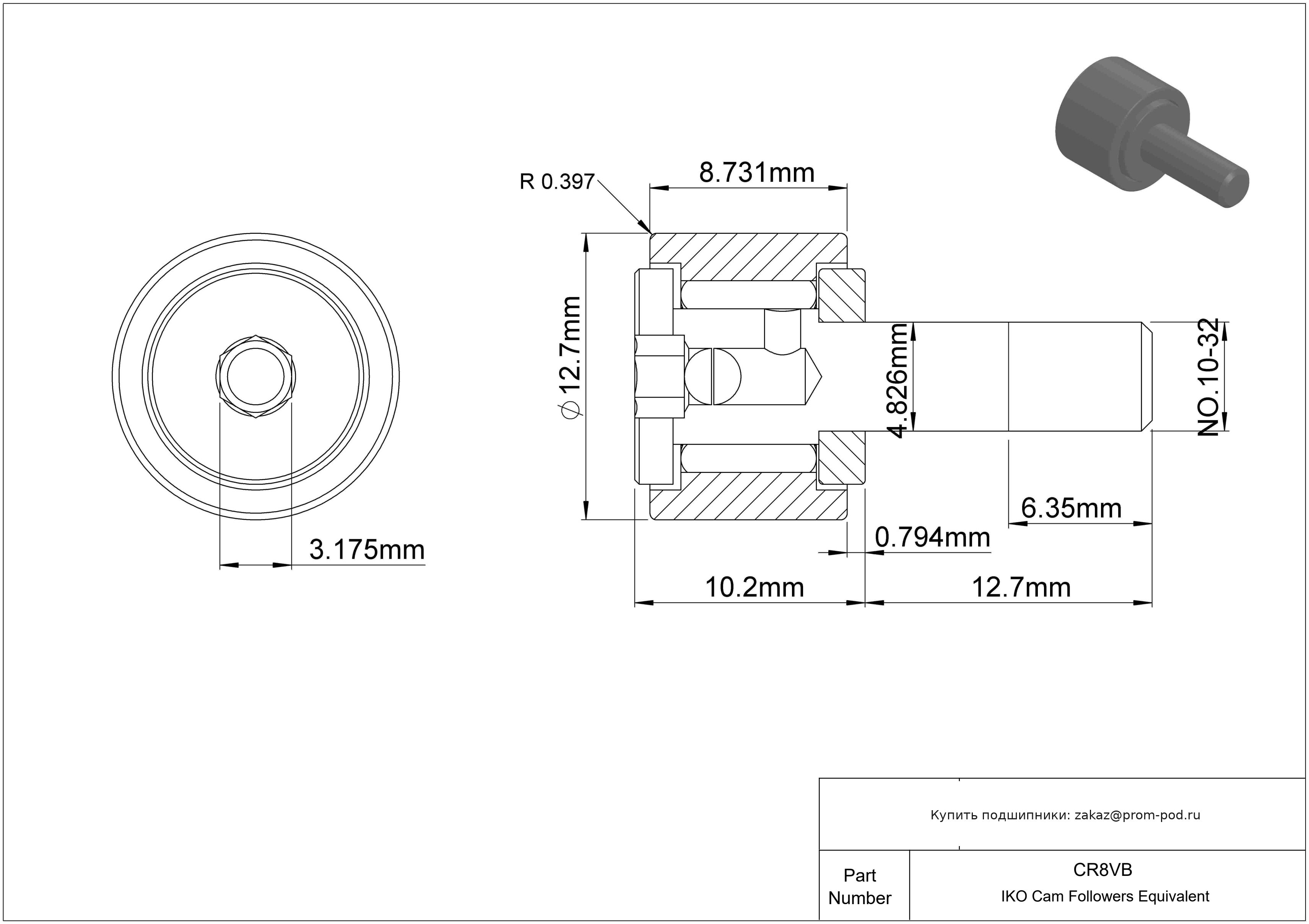 Игольчатый опорный ролик - дюймовая серия. Бессепараторный роликовый подшипник.