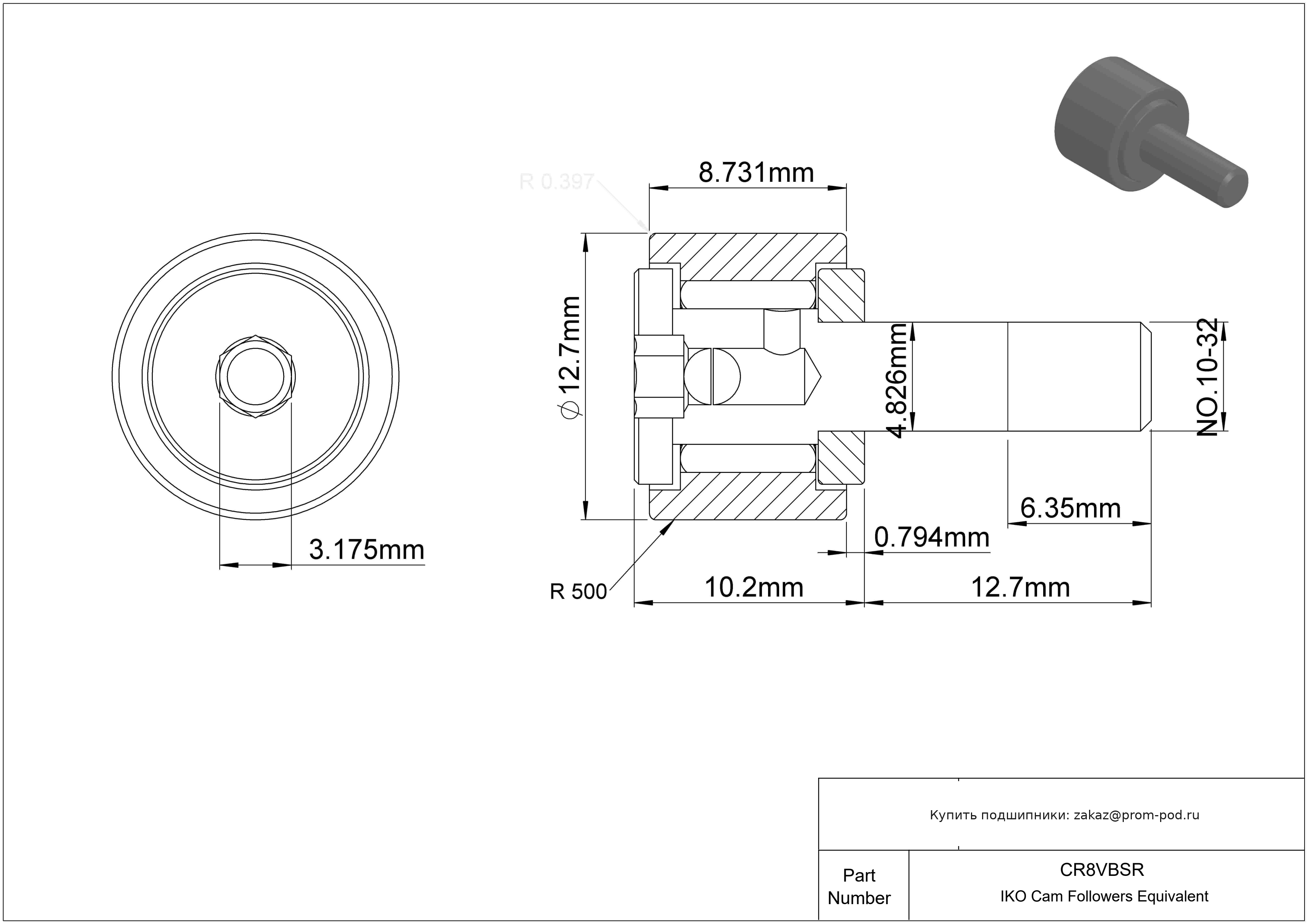 Игольчатый опорный ролик - дюймовая серия. Бессепараторный роликовый подшипник.