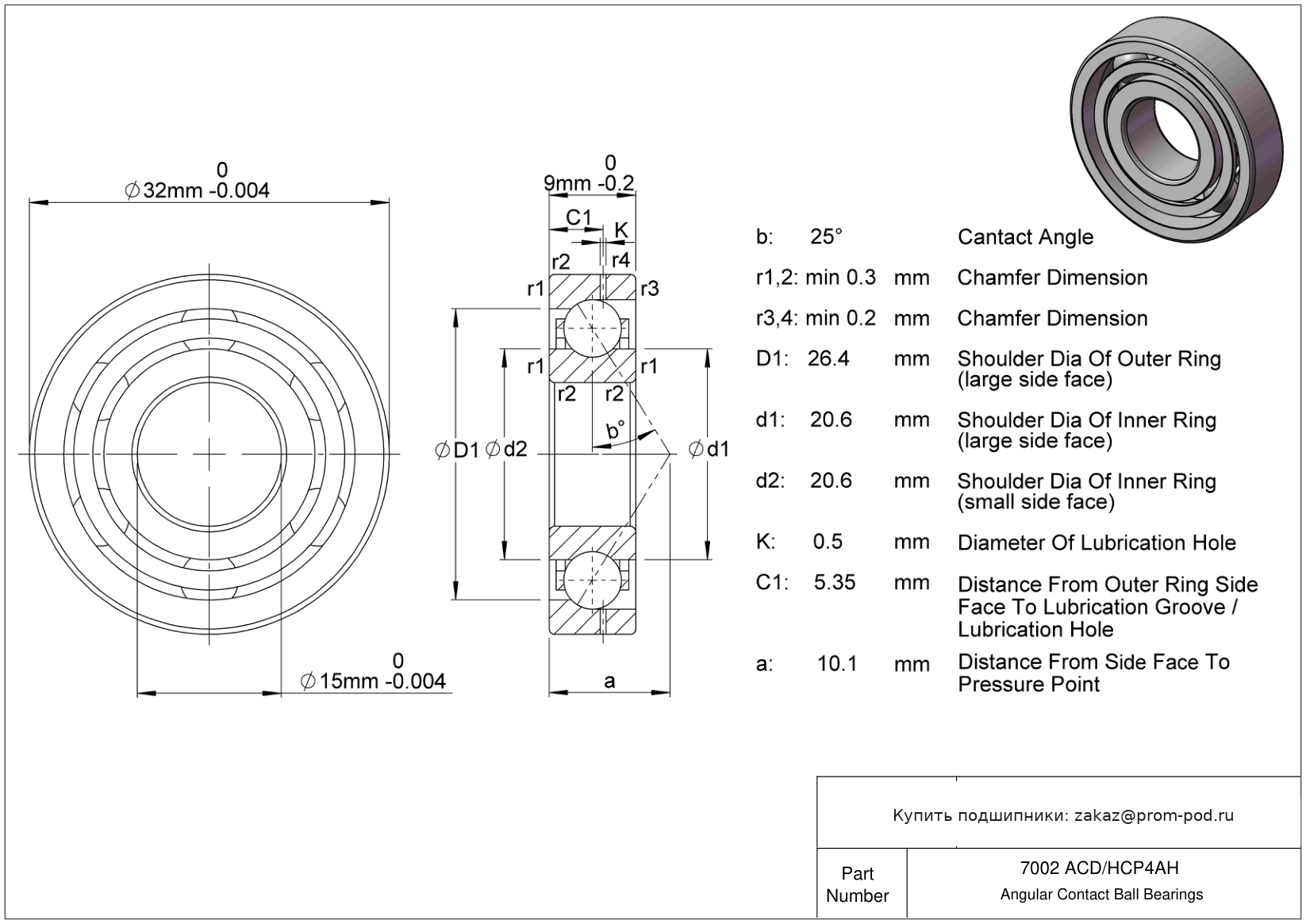 Угол контакта α=25, высокоскоростные, тип E. Р4А - специальный класс точности для прецизионных упорных радиальных подшипников - допуски Р4 кроме наружного диаметра.