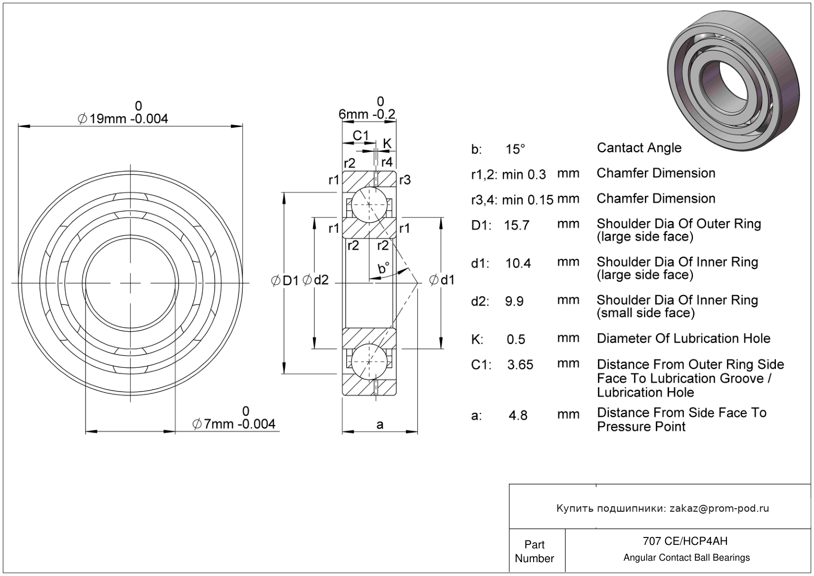 | SS707 2RS | Радиально-упорный шариковый подшипник | Уплотнение с обеих сторон, NBR. |
