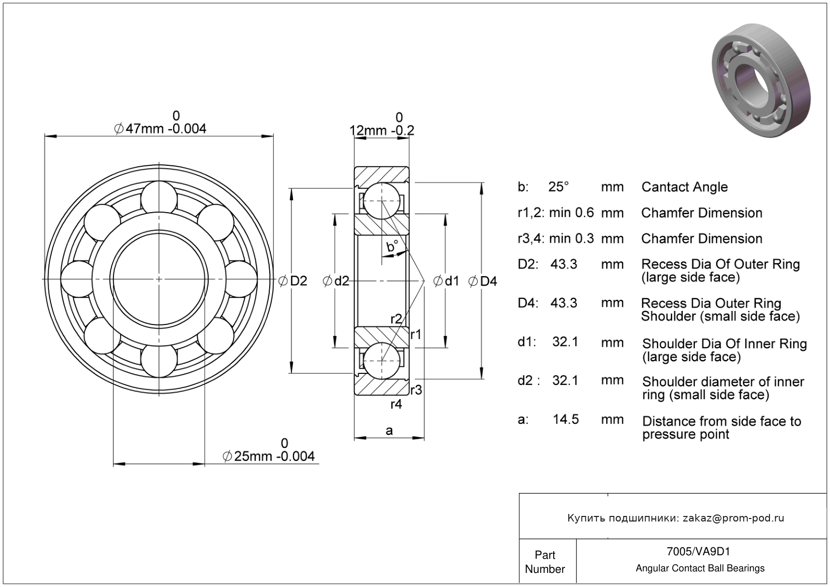 Цена на подшипник 7005/VA9D1 является расчетной и зависит от следующих факторов: