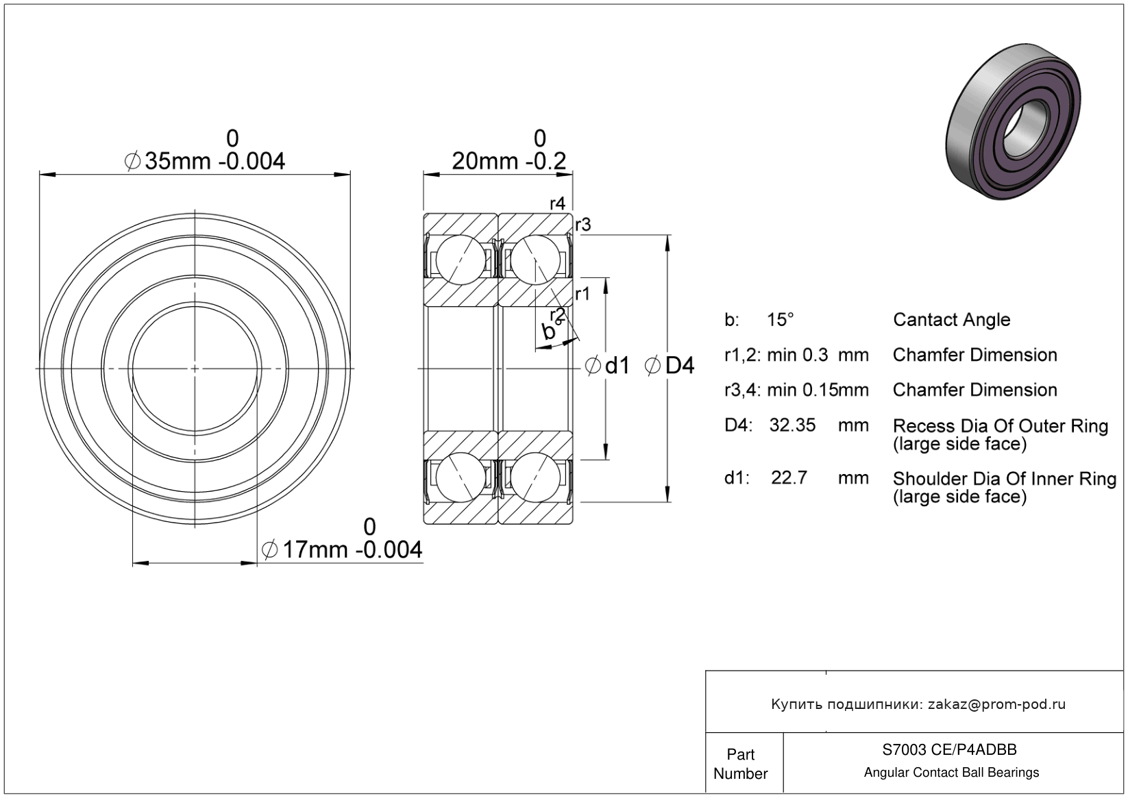 Р4А - специальный класс точности для прецизионных упорных радиальных подшипников - допуски Р4 кроме наружного диаметра. Угол контакта 25 градусов. Дуплекс пара, схема монтажа O спина к спине. Прецизионный однорядный радиально-упорный шарикоподшипник, угол контакта α=15. Тела качения из нитрида кремния.