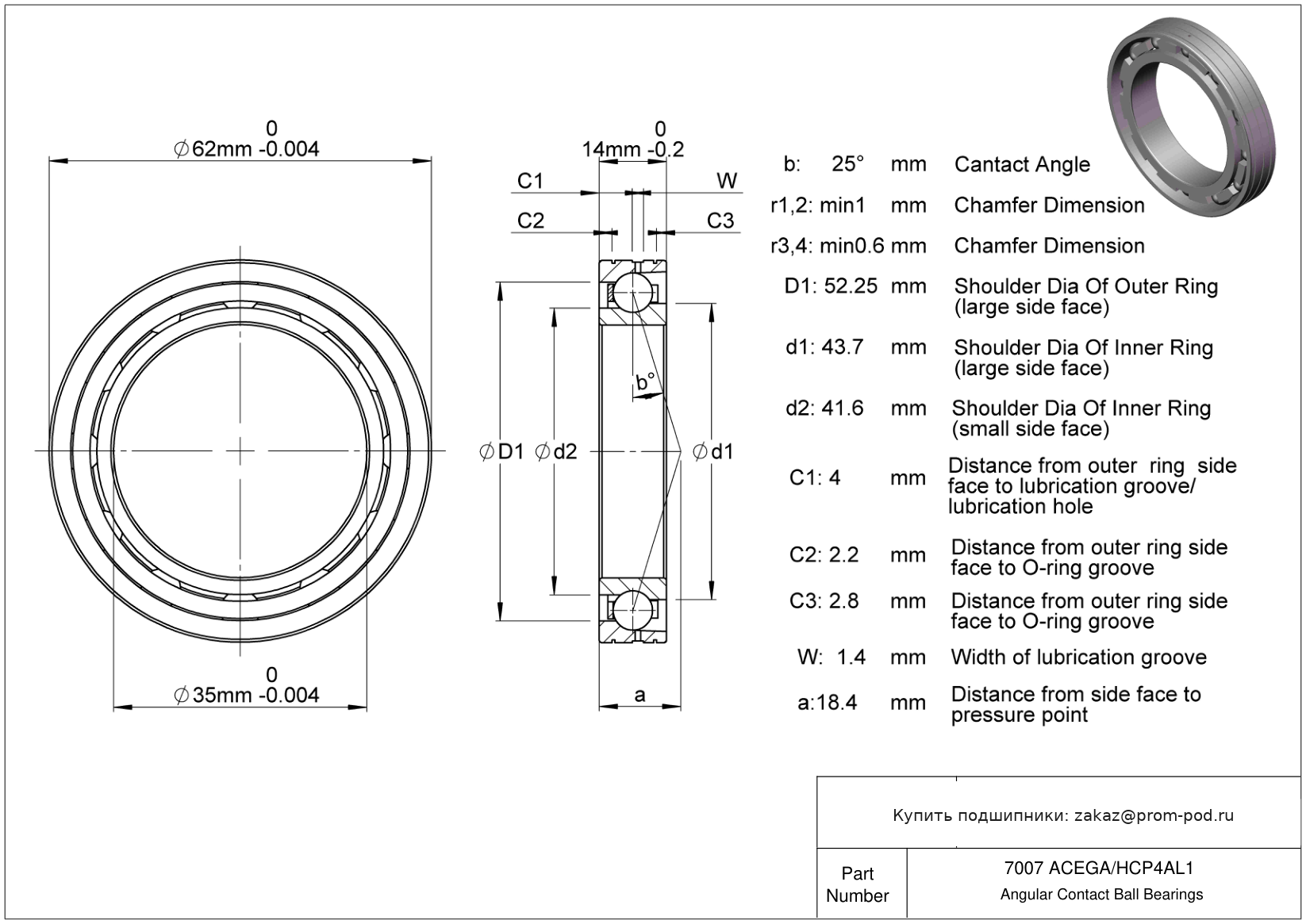 | 6007C | Шариковый подшипник | Двухрядный радиально-упорный шарикоподшипник без слота для ввода шариков, со сходящимися наружу углами контакта, жесткая конструкция. |