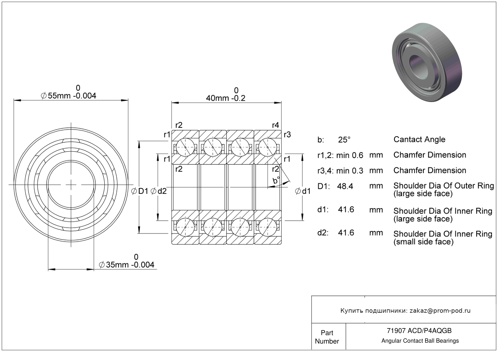 Однорядные радиально-упорные шарикоподшипники с углом контакта α=25. Р4А - специальный класс точности для прецизионных упорных радиальных подшипников - допуски Р4 кроме наружного диаметра. Угол контакта 25 градусов. Комплект тз четырех подшипников для универсальной установки.