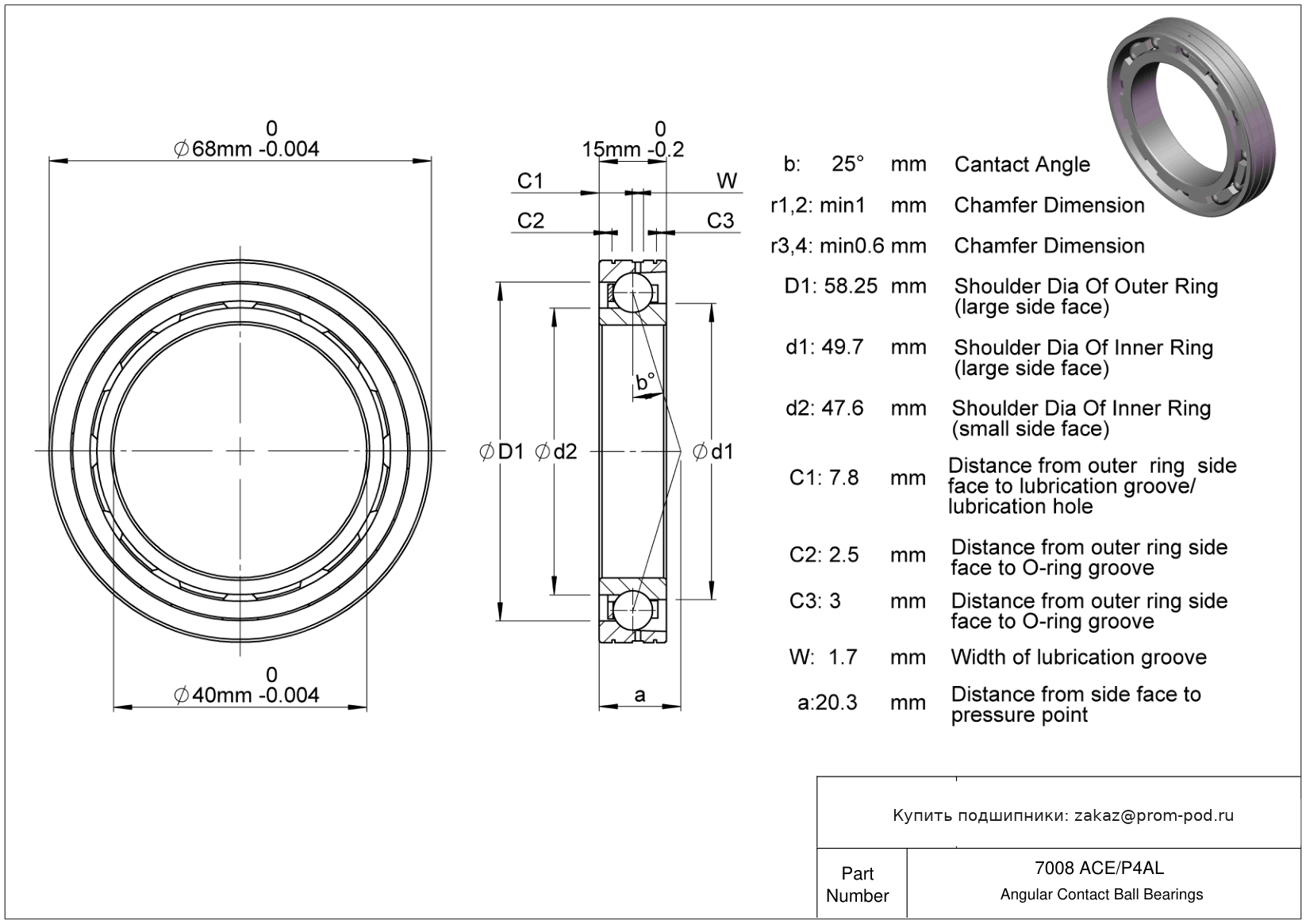 | 6008C | Шариковый подшипник | Двухрядный радиально-упорный шарикоподшипник без слота для ввода шариков, со сходящимися наружу углами контакта, жесткая конструкция. |