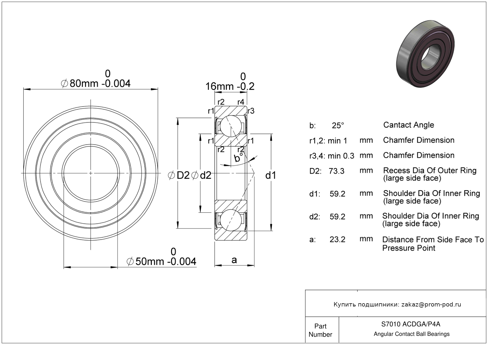 | SS7010 2RS | Радиально-упорный шариковый подшипник | Уплотнение с обеих сторон, NBR. |