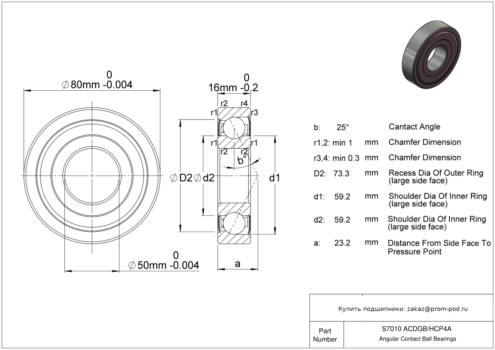 | SS7010 2RS | Радиально-упорный шариковый подшипник | Уплотнение с обеих сторон, NBR. |