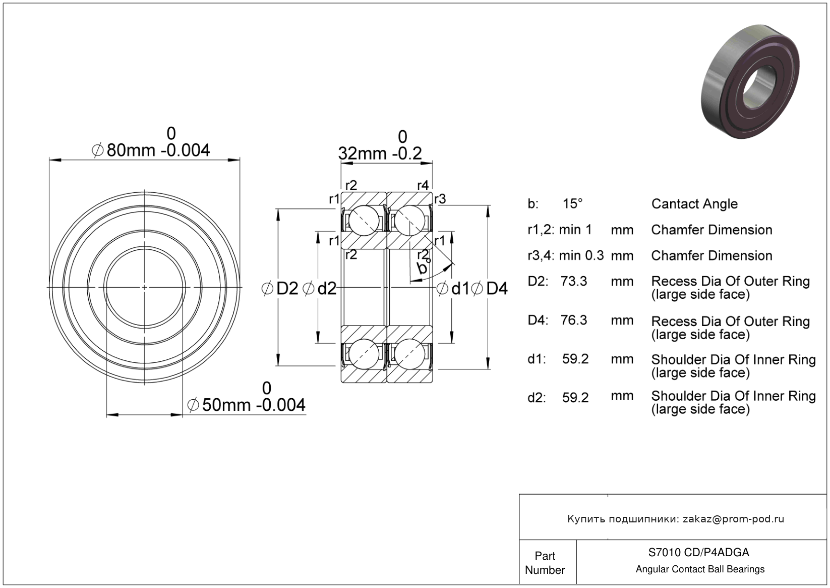 Р4А - специальный класс точности для прецизионных упорных радиальных подшипников - допуски Р4 кроме наружного диаметра. Угол контакта 25 градусов. Дуплекс пара, схема монтажа O спина к спине. Угол контакта α=15, высокоскоростные, тип E.
