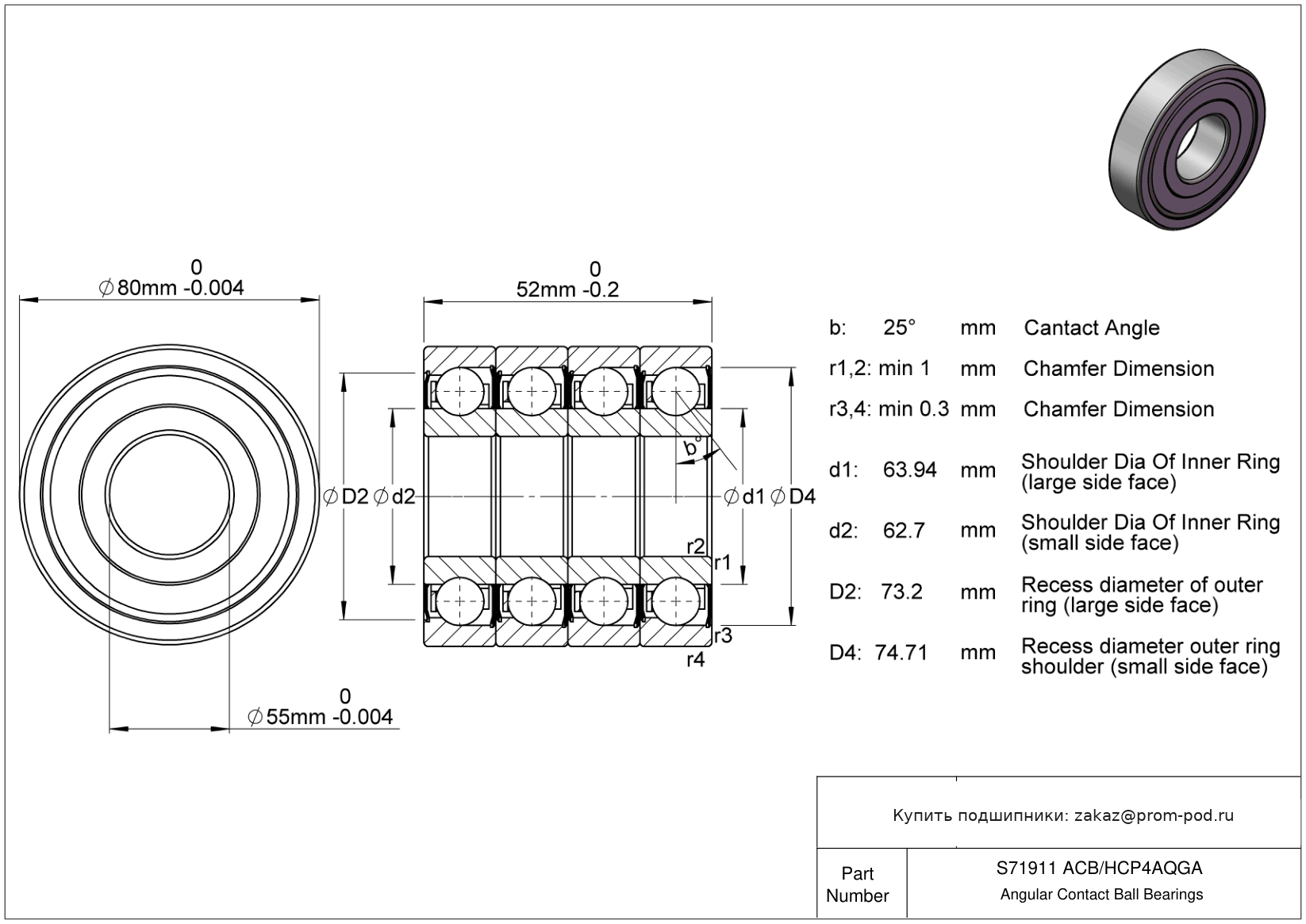 Однорядные радиально-упорные шарикоподшипники с углом контакта α=25. Р4А - специальный класс точности для прецизионных упорных радиальных подшипников - допуски Р4 кроме наружного диаметра. Для универсального монтажа, лёгкий преднатяг (серии 719 D, 70 D и 72 D) или средний преднатяг (серии 718 D, 719 E, 70 E, 719 B и 70 B). Сепаратор: Стандарт. Подробная информация предоставляется по запросу.