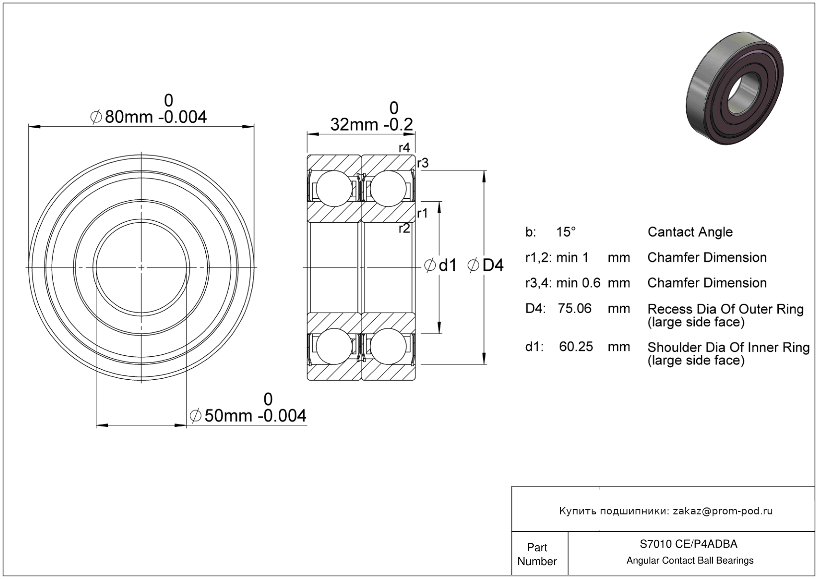 Р4А - специальный класс точности для прецизионных упорных радиальных подшипников - допуски Р4 кроме наружного диаметра. Угол контакта 25 градусов. Дуплекс пара, схема монтажа O спина к спине. Угол контакта α=15, высокоскоростные, тип E.