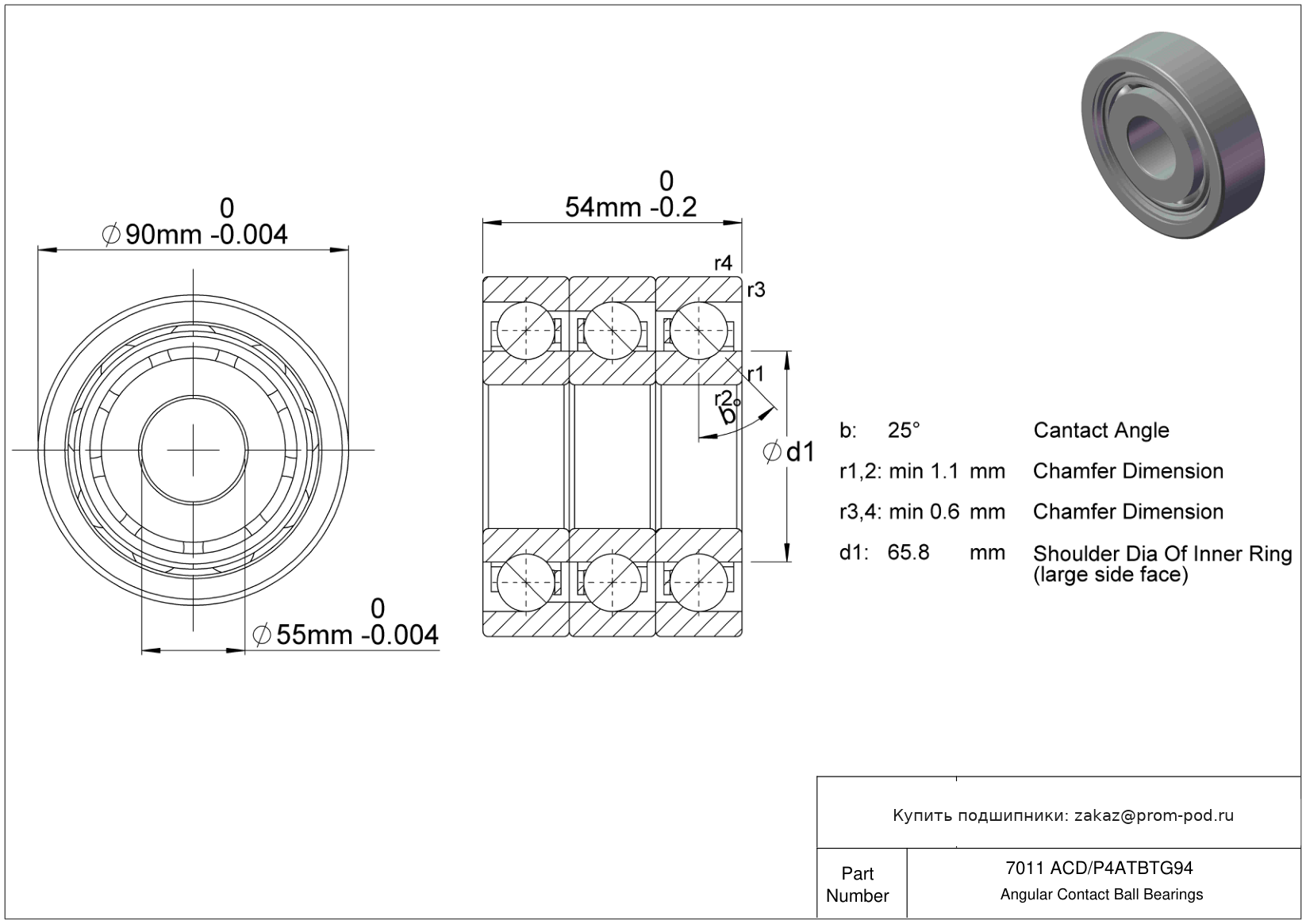 Шарики и кольца из материала AISI 440C. TBT+B.Комплект из трёх взаимно пригнанных однорядных радиальных шарикоподшипников или радиально-упорных шарикоподшипников, устанавливаемых по схеме тандем-О. Обозначение осевого зазора или предварительного натяга такое же, как у DB. Лёгкий преднатяг (серии 719 D, 70 D и 72 D) или Средний преднатяг (серии 718 D, 719 E, 70 E, 719 B и 70 B). Однорядные радиально-упорные шарикоподшипники с углом контакта α=25. Р4А - специальный класс точности для прецизионных упорных радиальных подшипников - допуски Р4 кроме наружного диаметра.