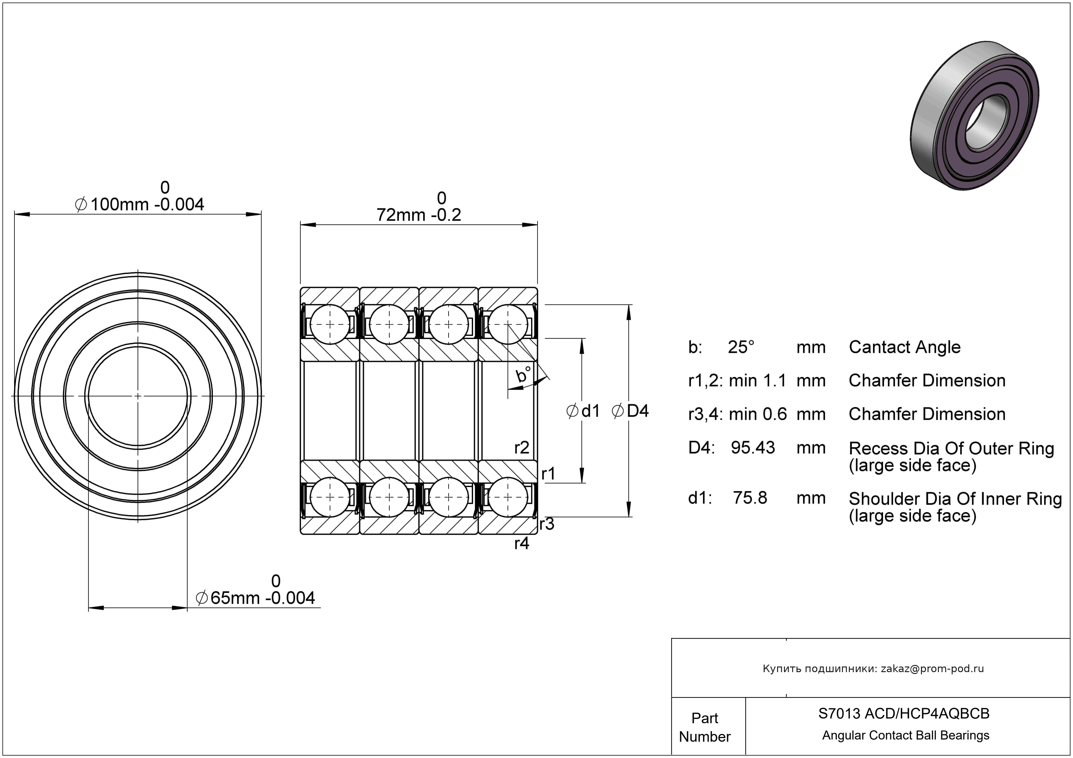 Шарики и кольца из материала AISI 440C. Угол контакта α=25, высокоскоростные, тип B. Р4А - специальный класс точности для прецизионных упорных радиальных подшипников - допуски Р4 кроме наружного диаметра. Угол контакта 25 градусов. Комплект тз четырех подшипников для универсальной установки. Тела качения из нитрида кремния.