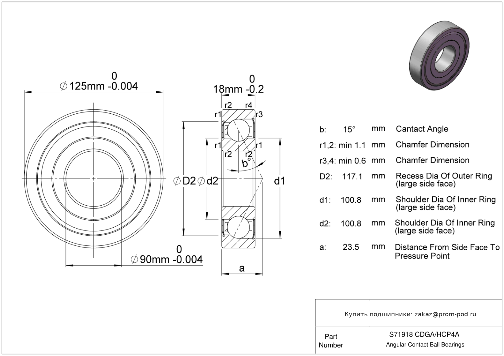 | SS71918 2RS | Радиально-упорный шариковый подшипник | Уплотнение с обеих сторон, NBR. |