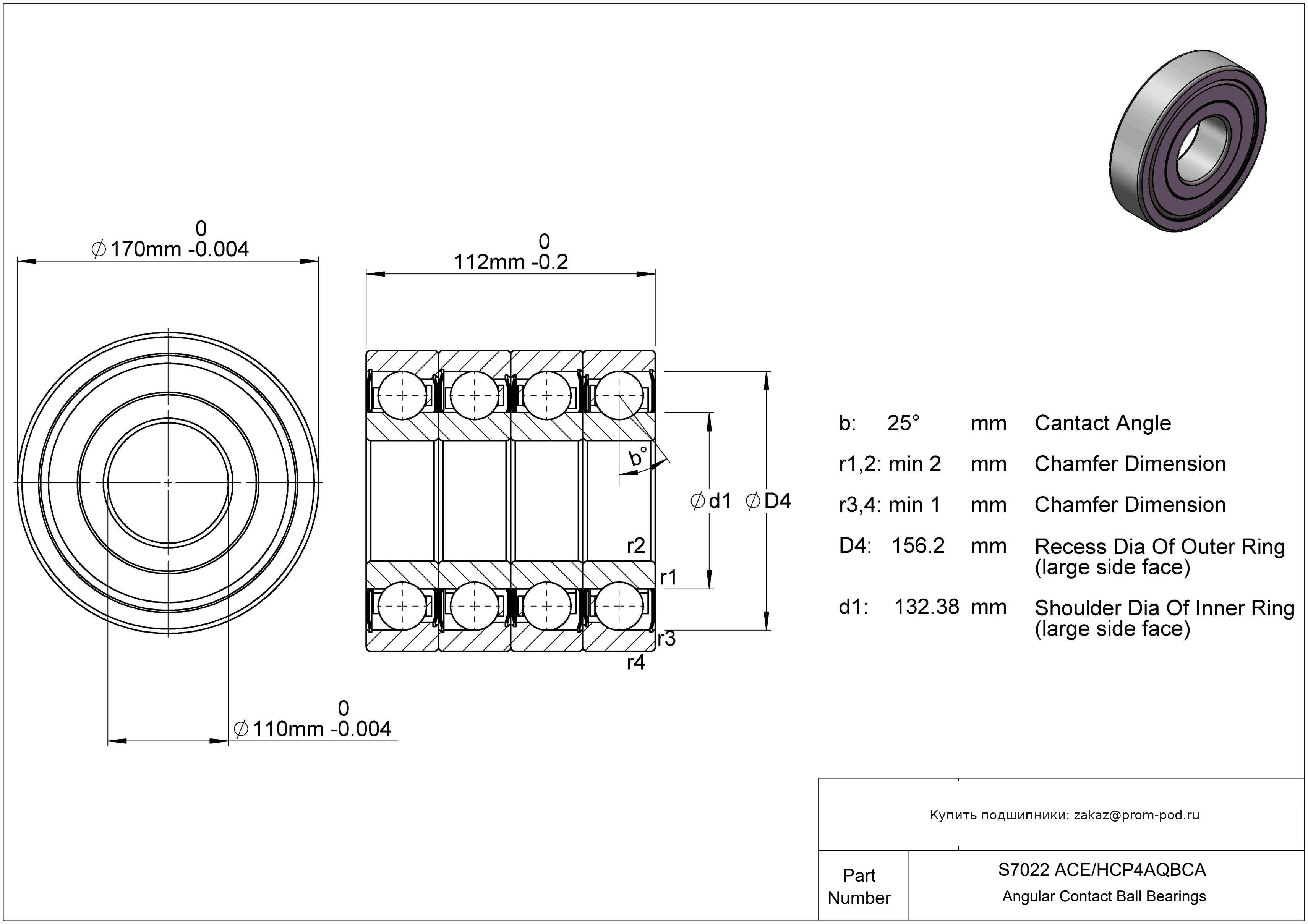 Шарики и кольца из материала AISI 440C. QBC+C. Комплект из четырёх взаимно пригнанных однорядных радиальных шарикоподшипников или радиально-упорных шарикоподшипников. Две пары подшипников, установленныхпо схеме тандем, составляются в комплект по 0-образной схеме. Обозначения осевого зазора или предварительного натяга такое же, как у DB. Средний преднатяг (серии 719 D, 70 D и 72 D) или Большой преднатяг (серии 718 D, 719 E, 70 E, 719 B и 70 B). Р4А - специальный класс точности для прецизионных упорных радиальных подшипников - допуски Р4 кроме наружного диаметра. Прецизионный однорядный радиально-упорный шарикоподшипник, угол контакта α=15.
