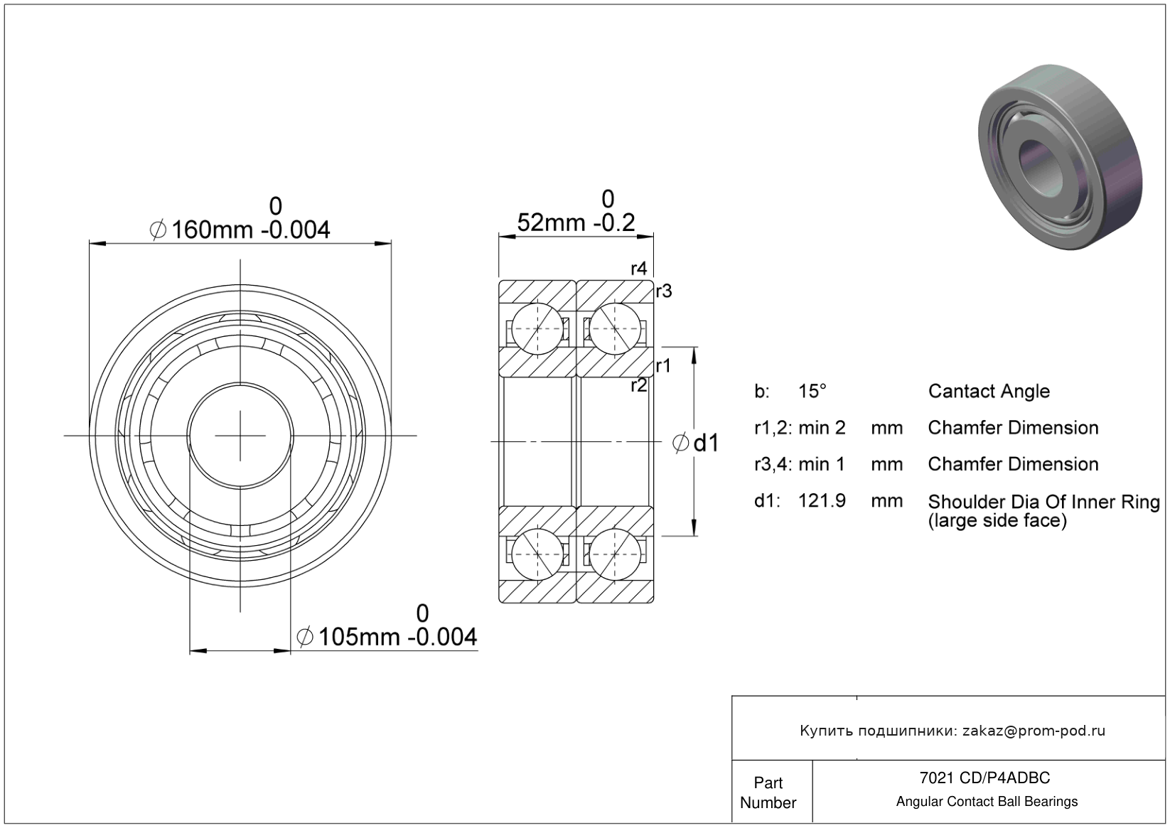 Р4А - специальный класс точности для прецизионных упорных радиальных подшипников - допуски Р4 кроме наружного диаметра. Угол контакта 25 градусов. Дуплекс пара, схема монтажа O спина к спине. Прецизионный однорядный радиально-упорный шарикоподшипник, угол контакта α=15.