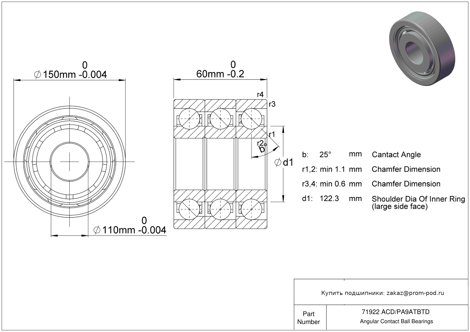 Цена на подшипник 71922 ACD/PA9ATBTD является расчетной и зависит от следующих факторов: