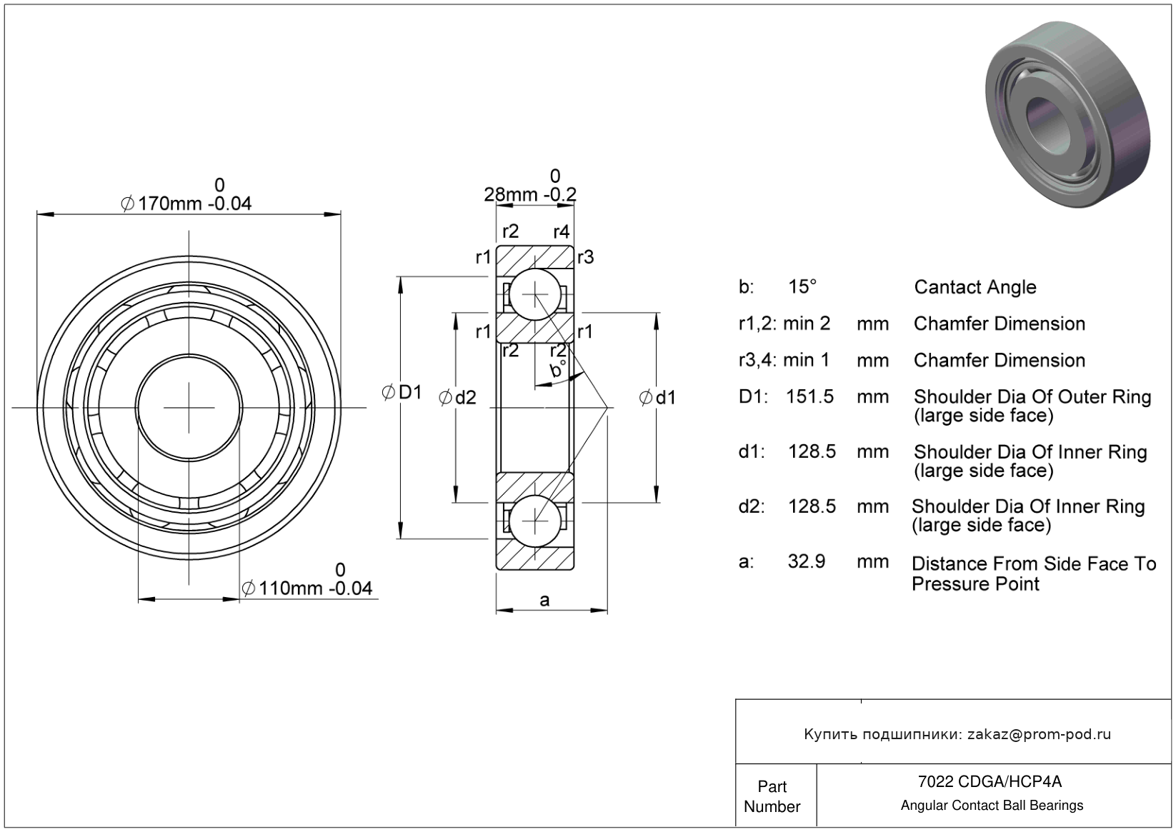 | 6022C | Шариковый подшипник | Двухрядный радиально-упорный шарикоподшипник без слота для ввода шариков, со сходящимися наружу углами контакта, жесткая конструкция. |