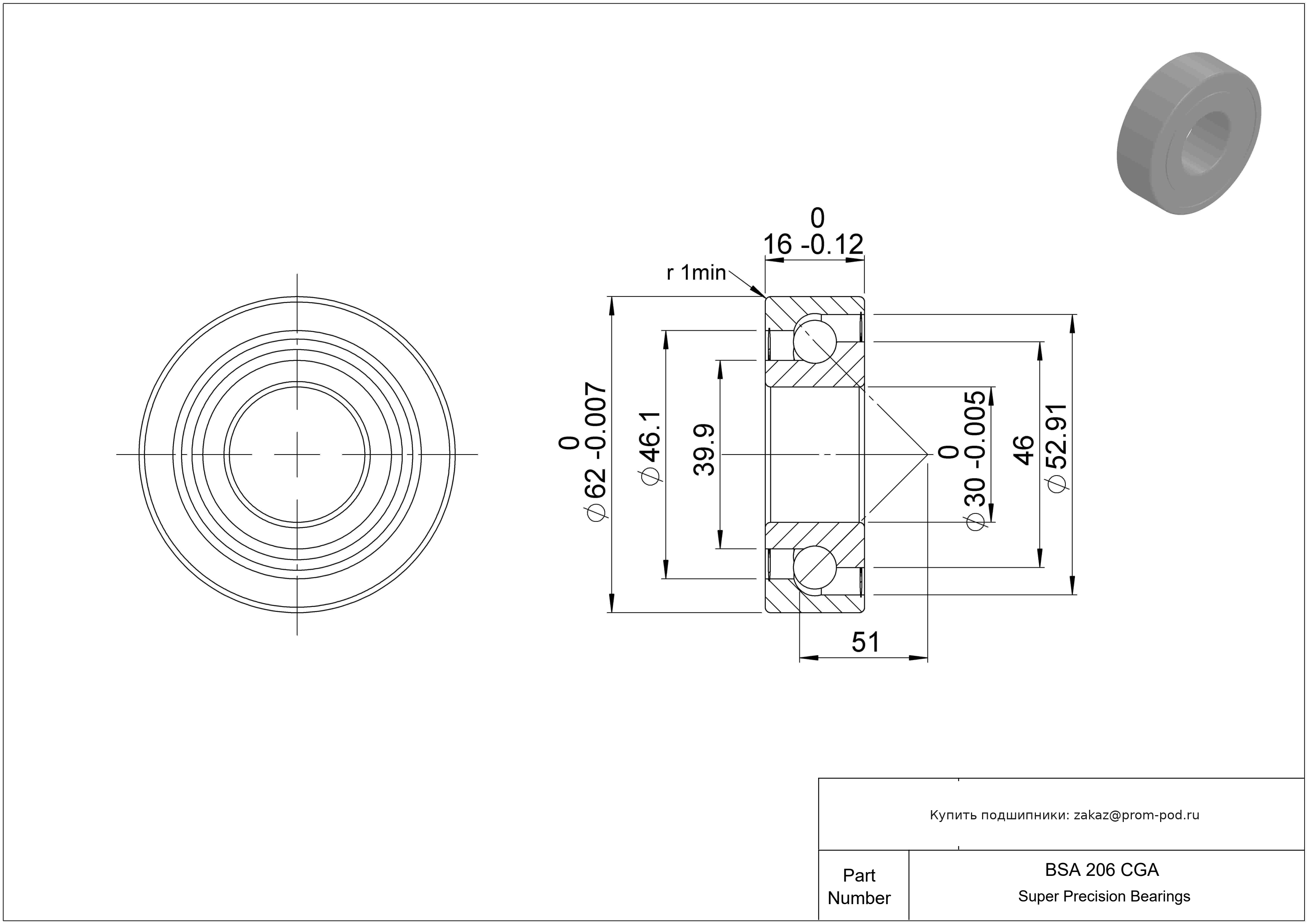 | SS7206 2RS | Радиально-упорный шариковый подшипник | Уплотнение с обеих сторон, NBR. |