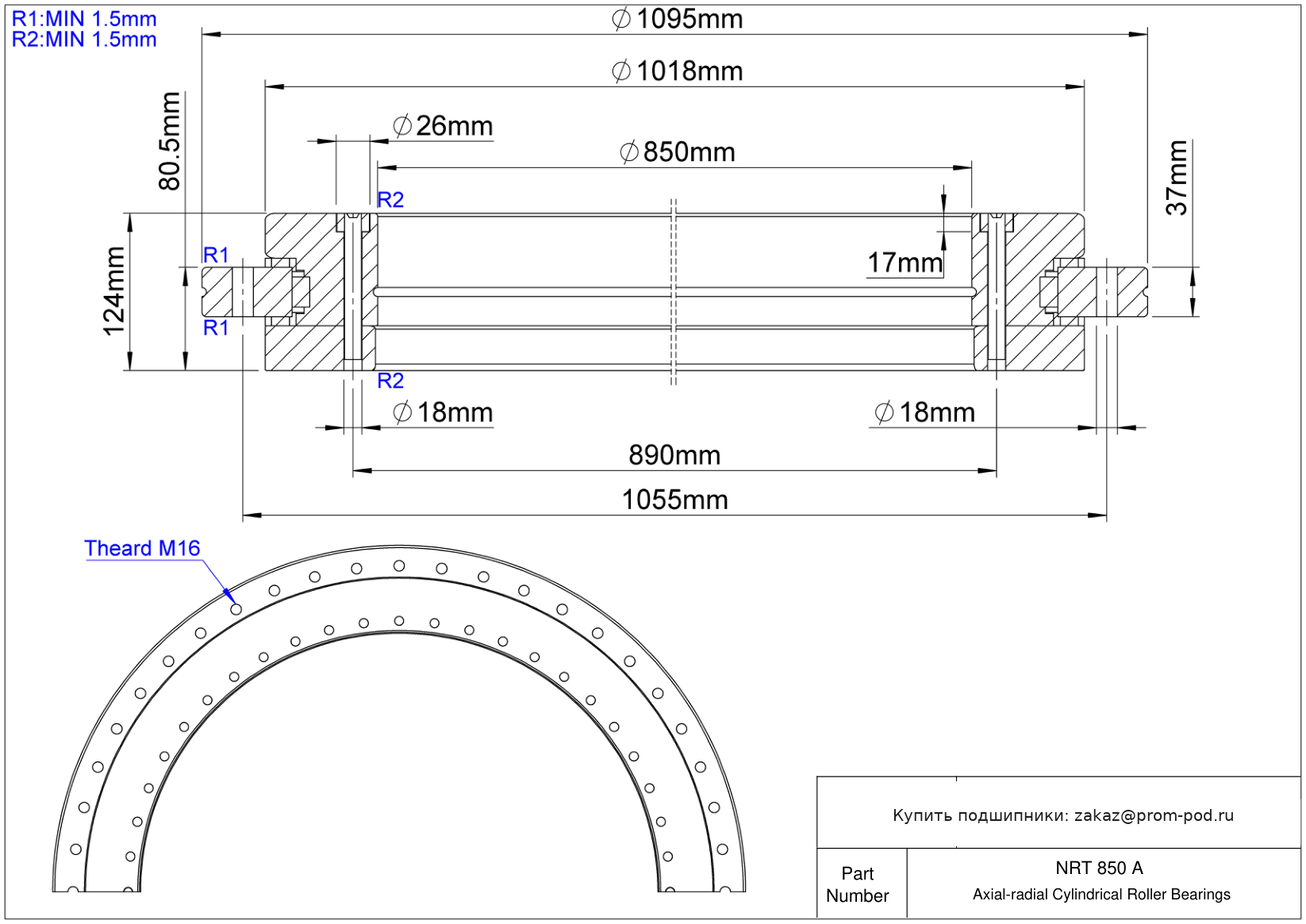 Цена на подшипник NRT 850 A является расчетной и зависит от следующих факторов: