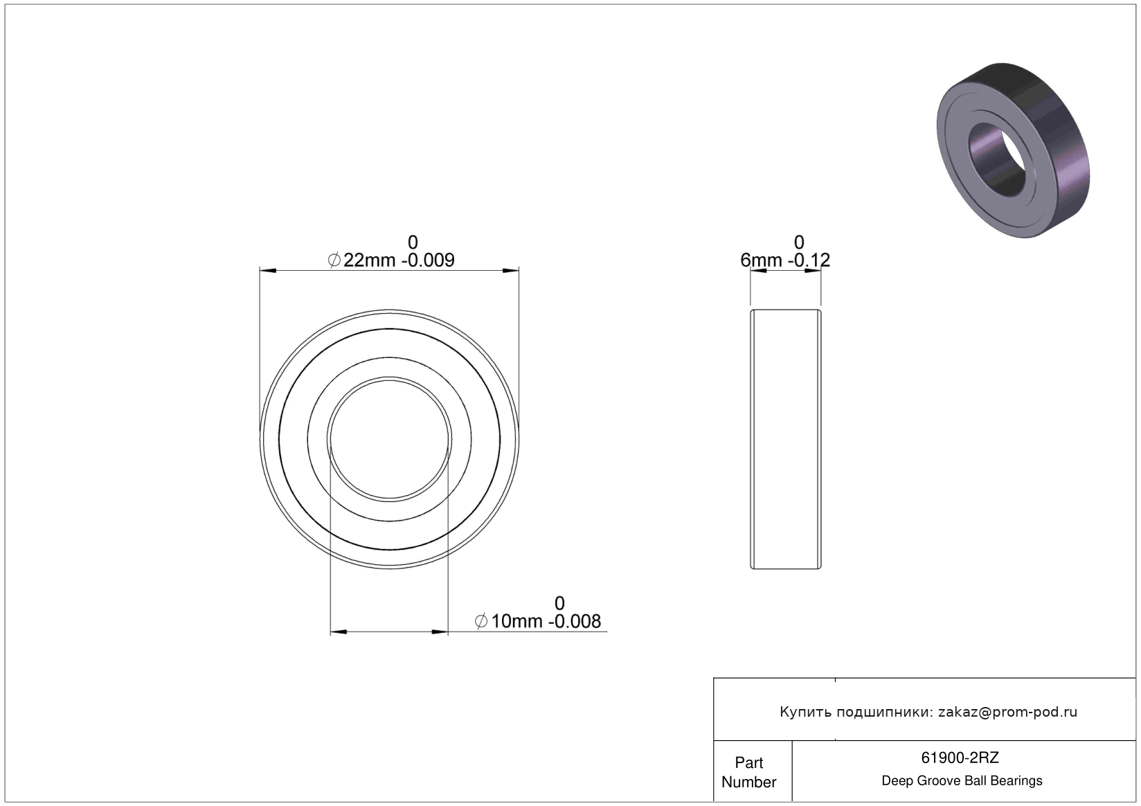 | 6900 2RS | Шариковый подшипник | Уплотнение с обеих сторон, NBR. |