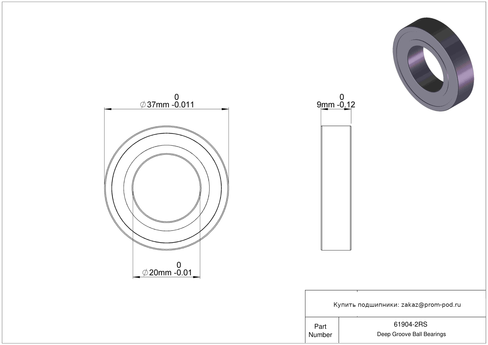 | 6904 2RS | Шариковый подшипник | Уплотнение с обеих сторон, NBR. |