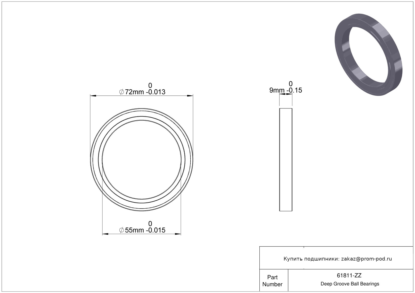 | 6811 2RU | Шариковый подшипник | Бесконтактное уплотнение с двух сторон. |