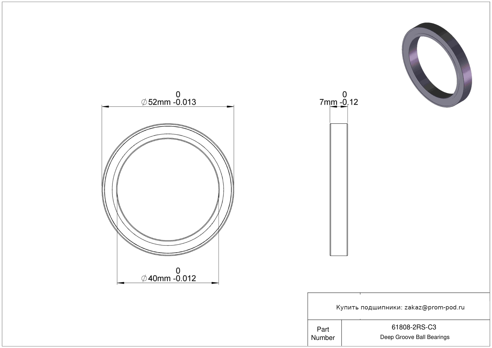 | 6808 2RS | Шариковый подшипник | Уплотнение с обеих сторон, NBR. |