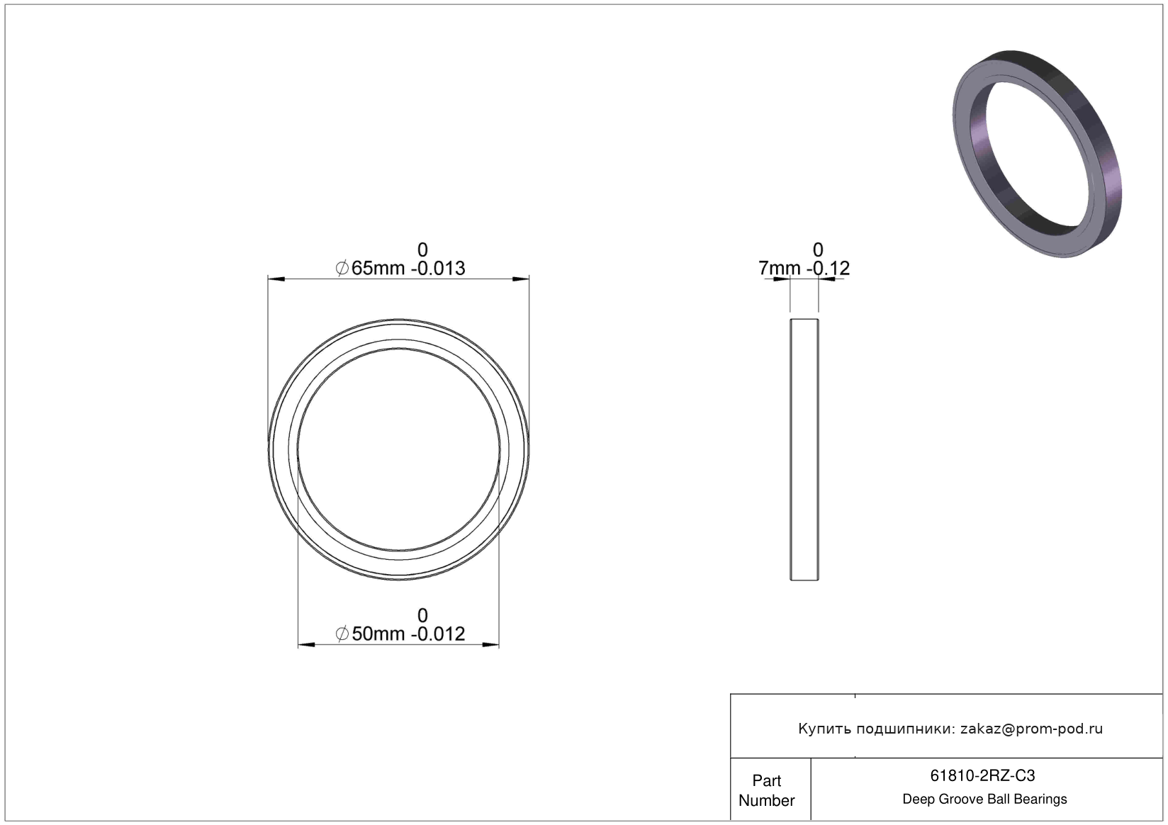 | 6810 2RS | Шариковый подшипник | Уплотнение с обеих сторон, NBR. |