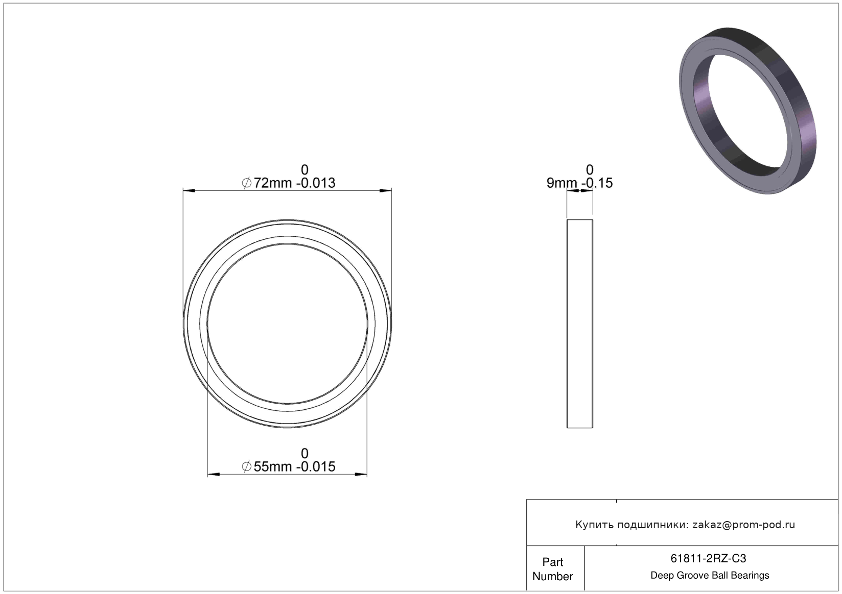 | 6811 2RU | Шариковый подшипник | Бесконтактное уплотнение с двух сторон. |