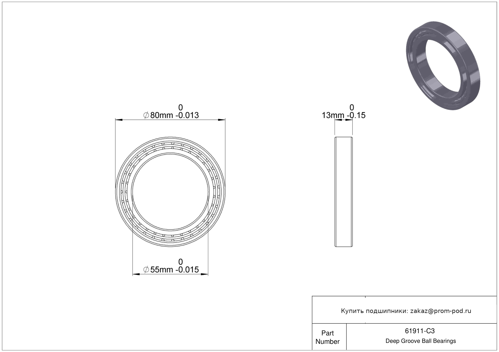 | 6911VVC3 | Шариковый подшипник | Внутренний зазор больше нормального. Высокоскоростные уплотнения. |